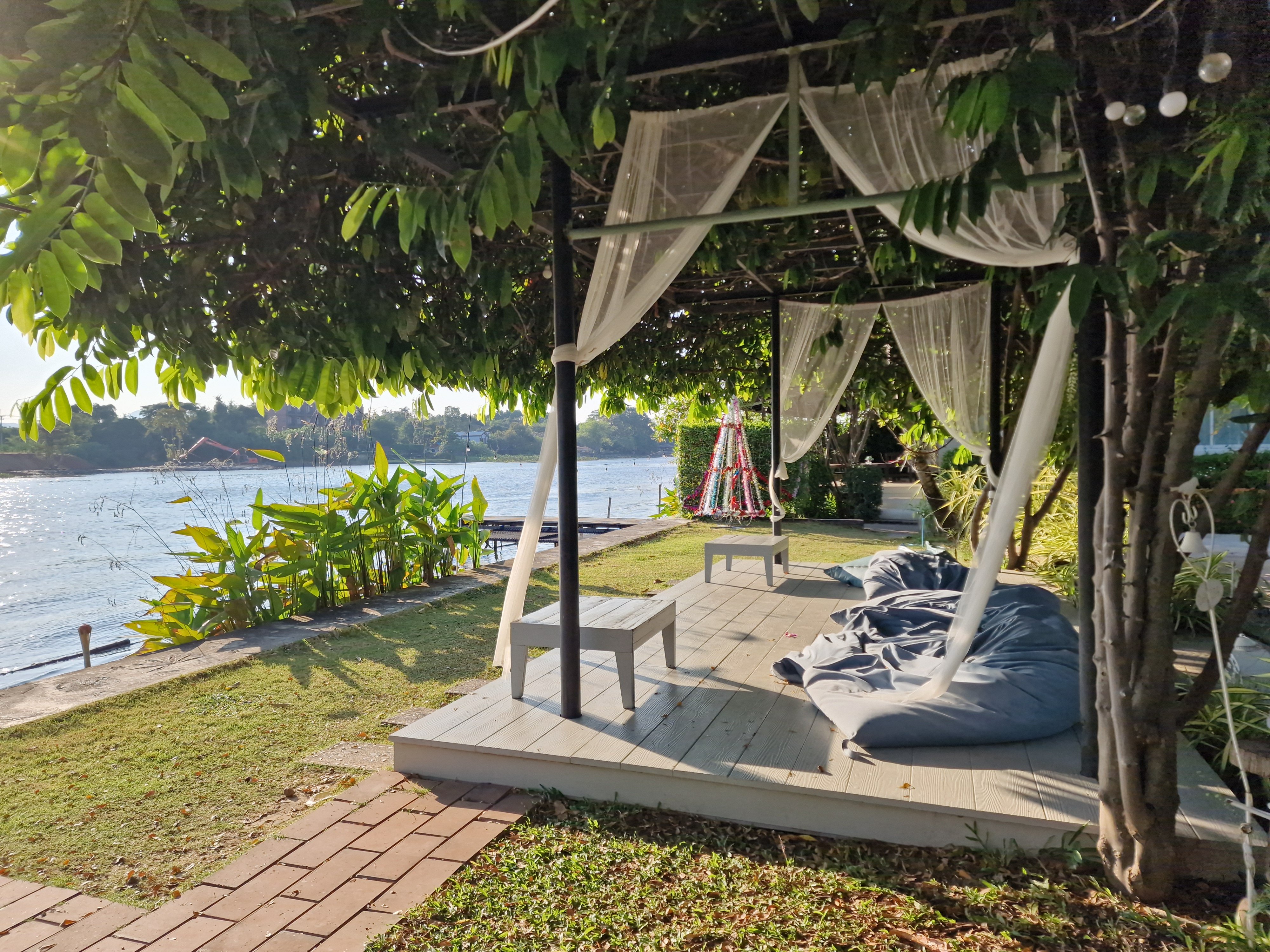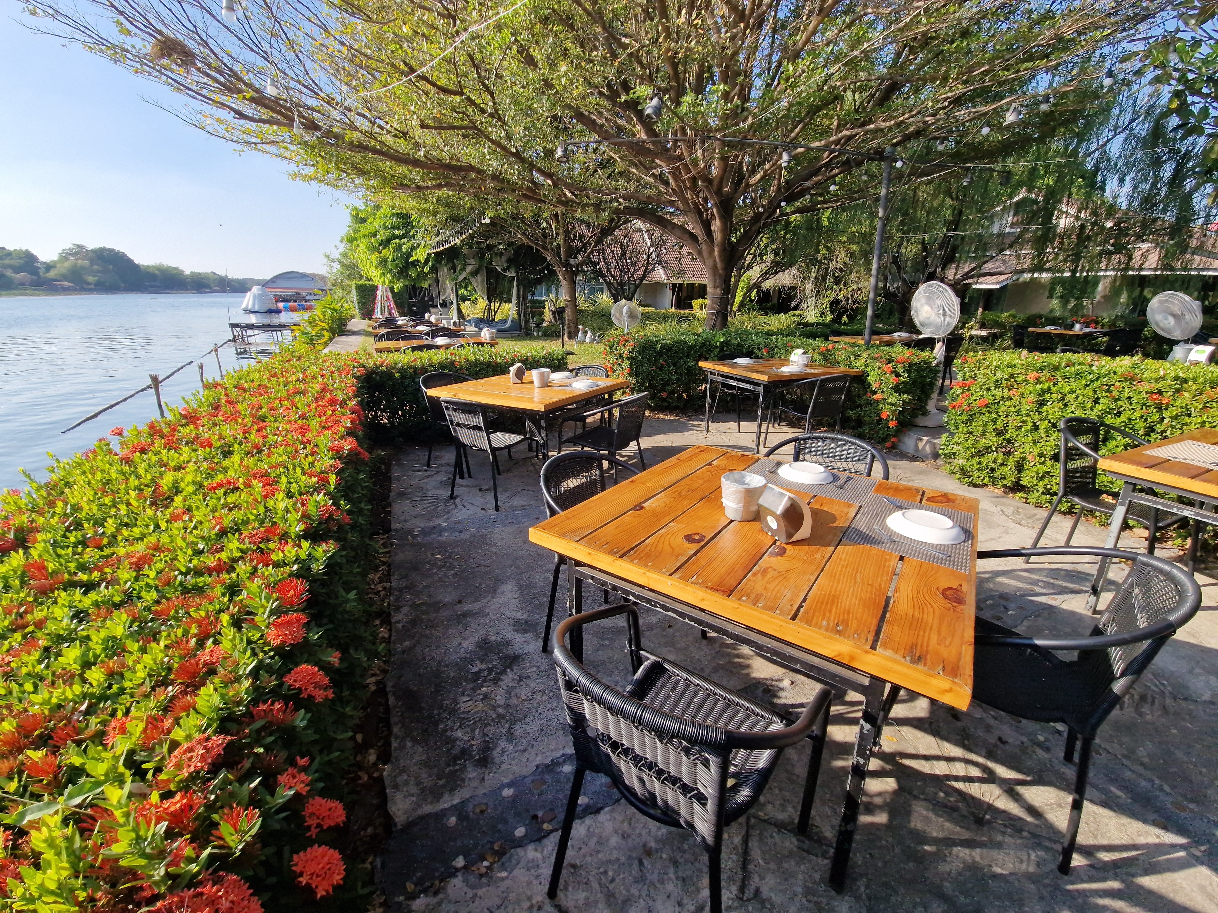 Het restaurant van mijn hotel aan de oevers van de Kwai.