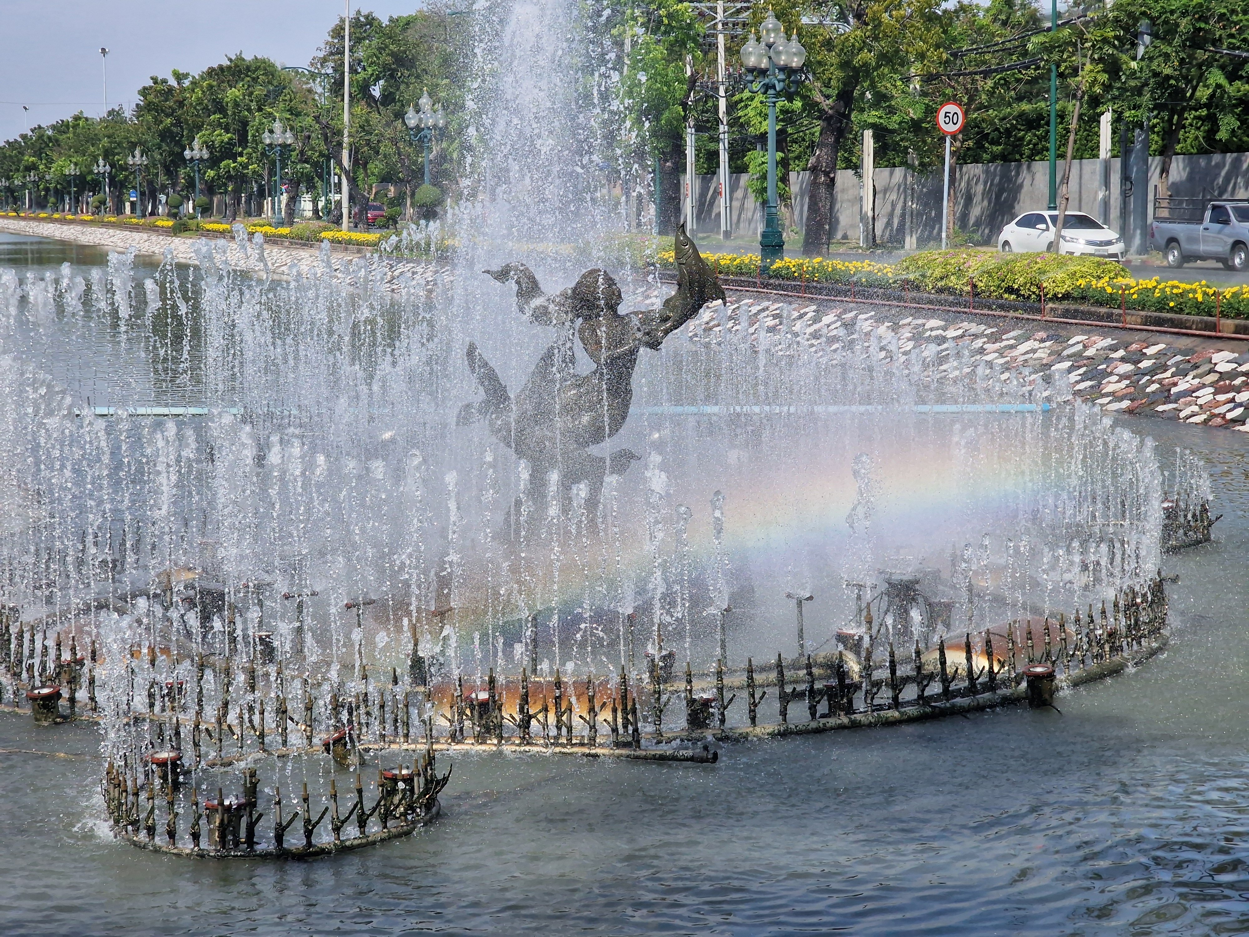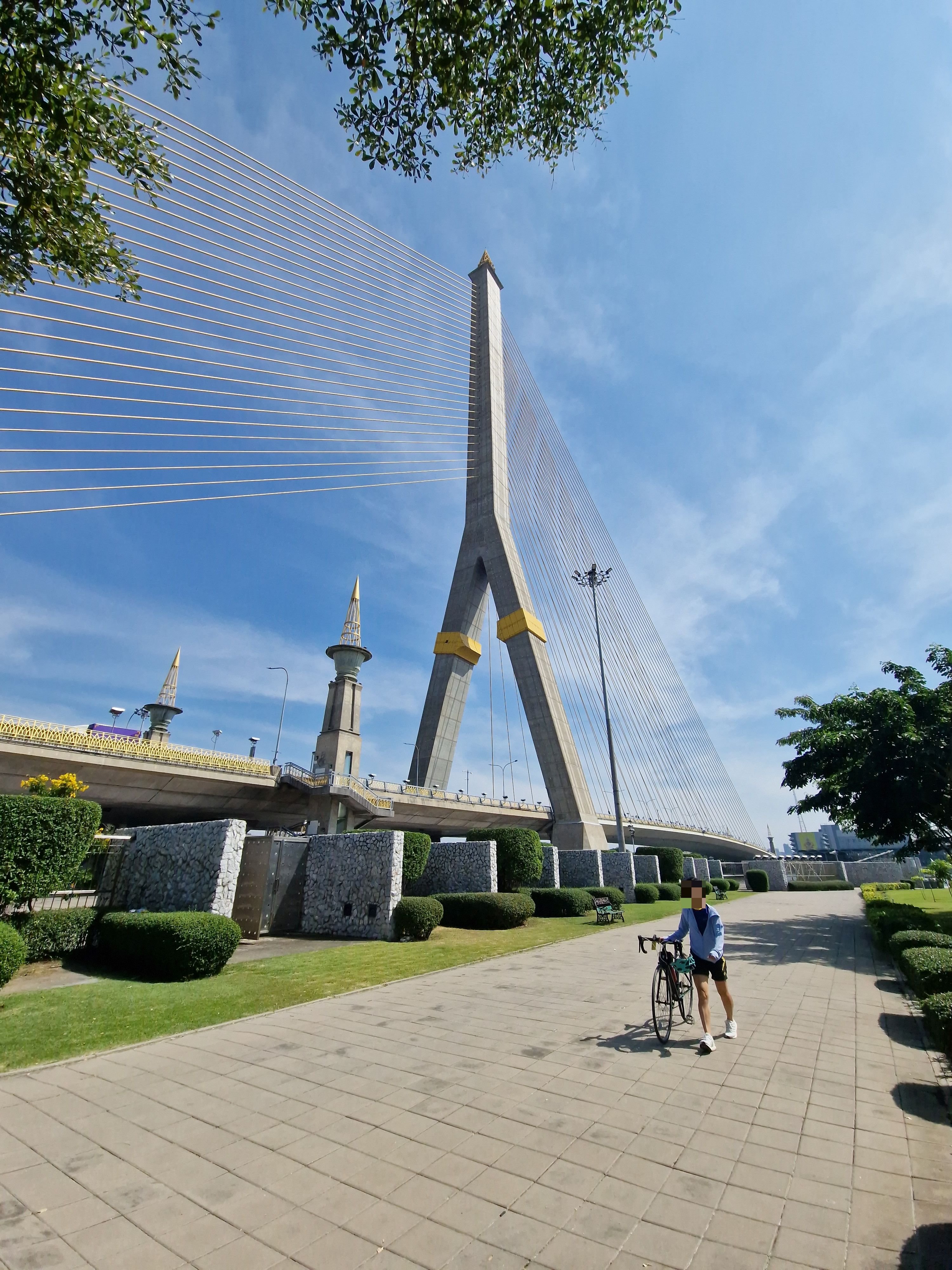 Dan gaan we voor een Rama minder: het Rama VIII park, een eindje verderop. Daarvoor moeten we de imposante Rama VIII brug over, die wordt gestut door een pijler van 160m hoog - een halve eiffeltoren. Misschien moet ik die ook even posten in het topic 'mooiste bruggen op je pad'.