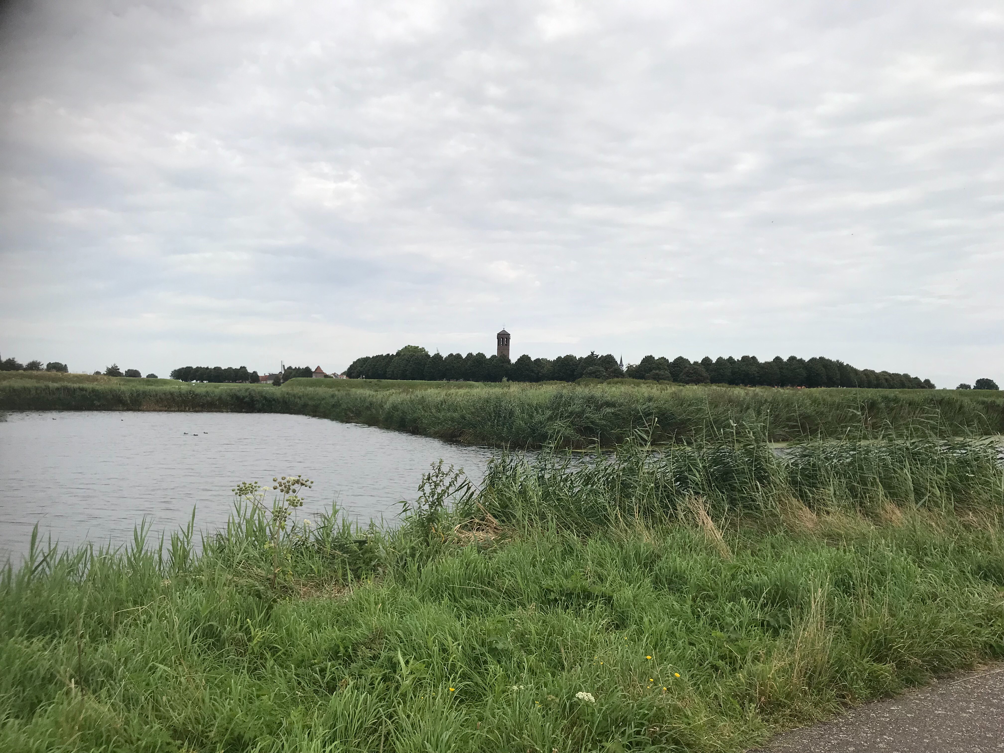 De toren van Schildwolde kan ik dus niet vanaf mijn molen zien, want er ligt een bos voor.
