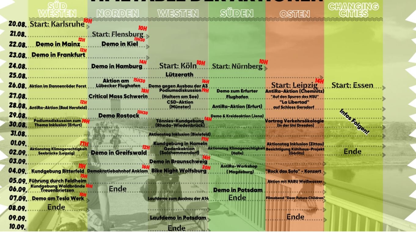 Is dit onderdeel van de klimaatprotesttour "Zonder Kerosine naar Berlijn"? Sinds 20 augustus en tot 10 september fietsen, in zes verschillende tochten vanuit alle delen van Duitsland naar de hoofdstad.