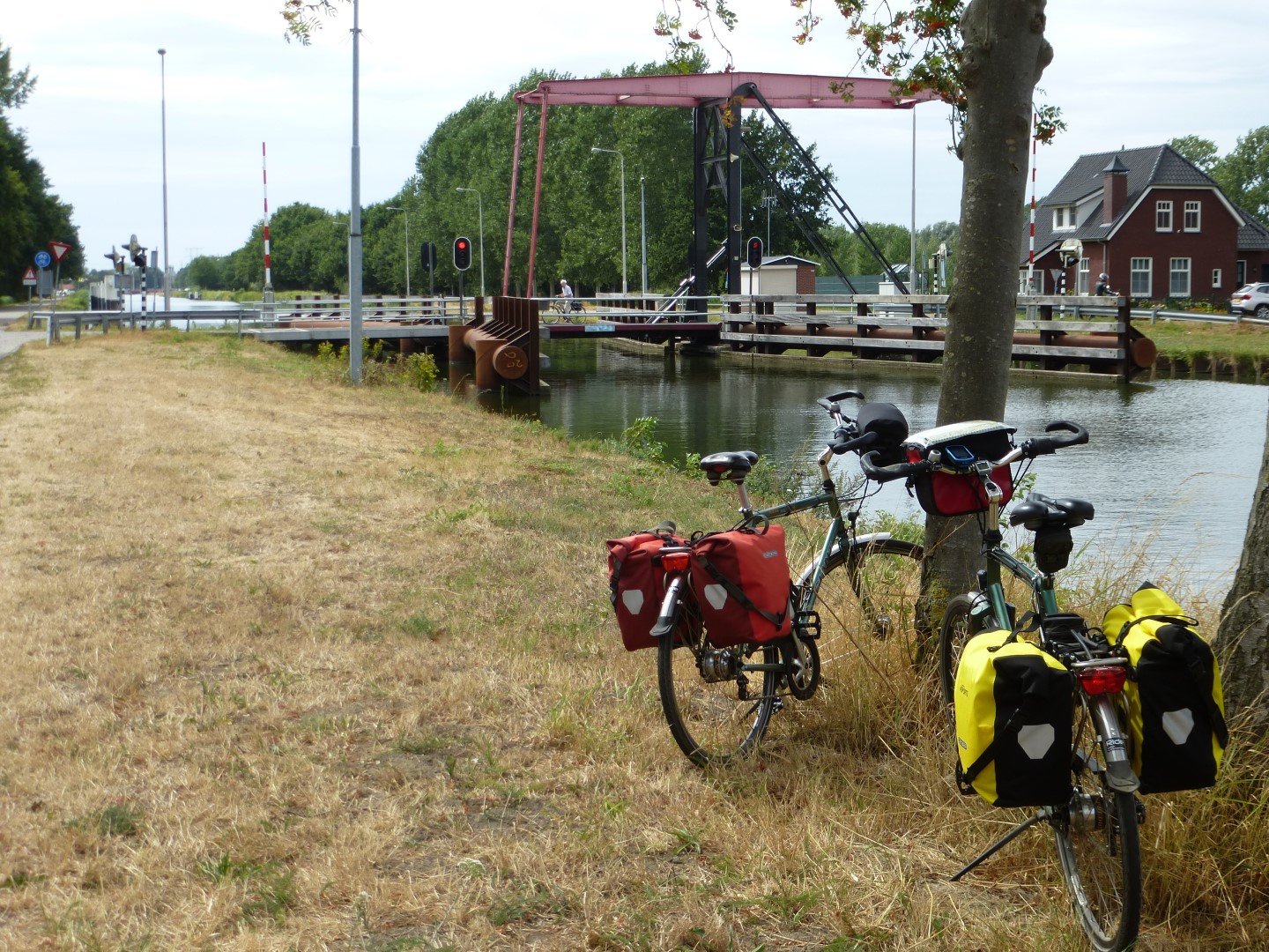 Het diep (kanaal) is hier versmald voor een verplaatst fietspad, ligt er soms een rotonde links buiten beeld? Moet dan wel een belangrijke verkeersader zijn, want zo'n groen hectometerpaaltje wat daar staat vindt men niet langs gewone lokale wegen. Zeer zeker een N-weg. Ik zie ook een bord met het logo van provincie Groningen.