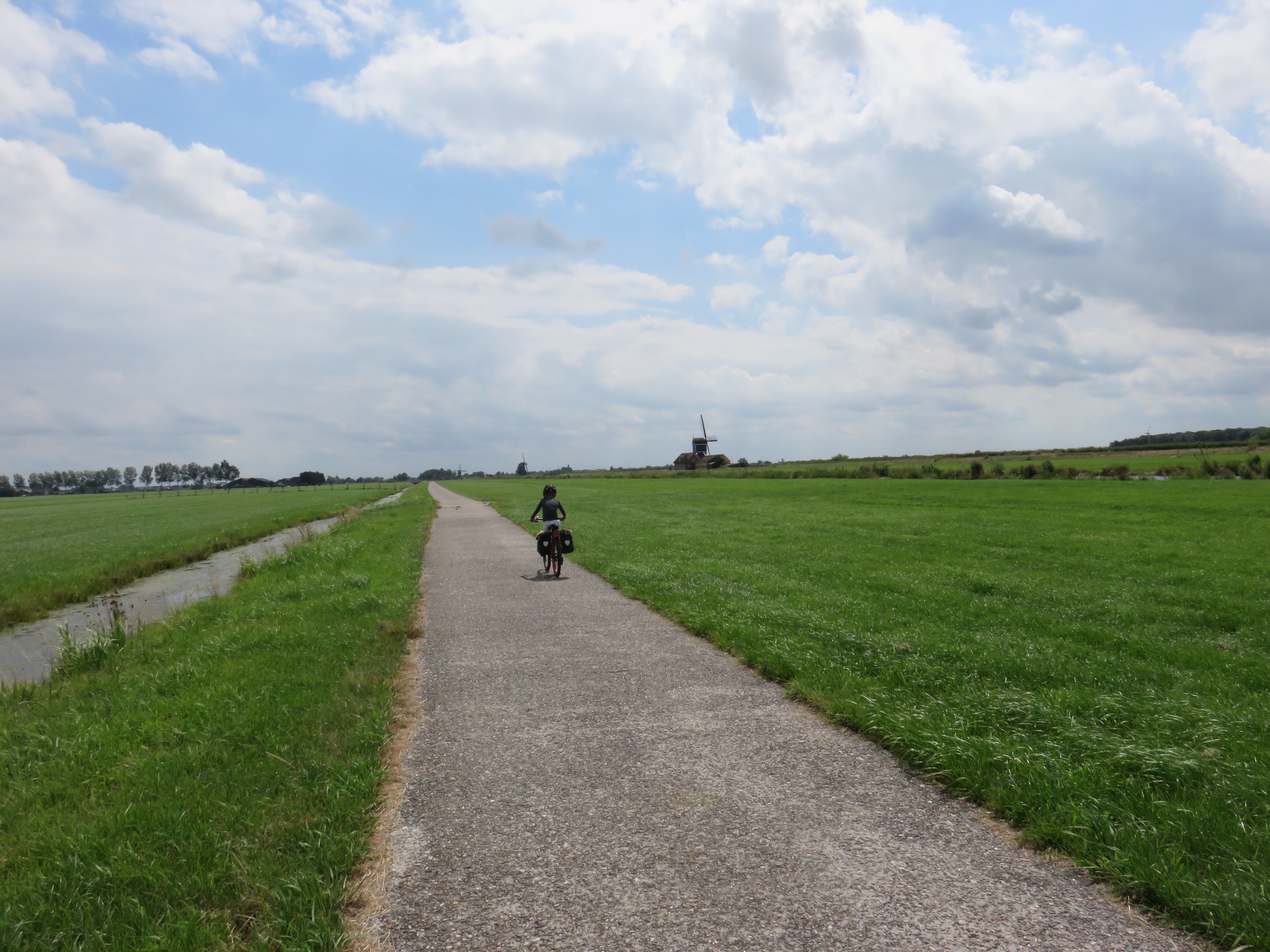 Echt een ongerept Hollands molenlandschap. Vanaf de andere kant ook erg fotogeniek: vier molens op een rij met de kerktoren op de achtergrond als afsluiting.