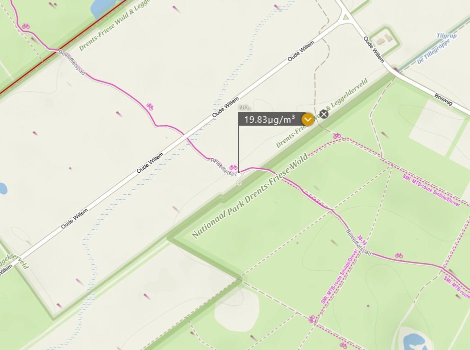 Het fietspad komt bij de bosrand over de grens tussen Drenthe en Friesland.