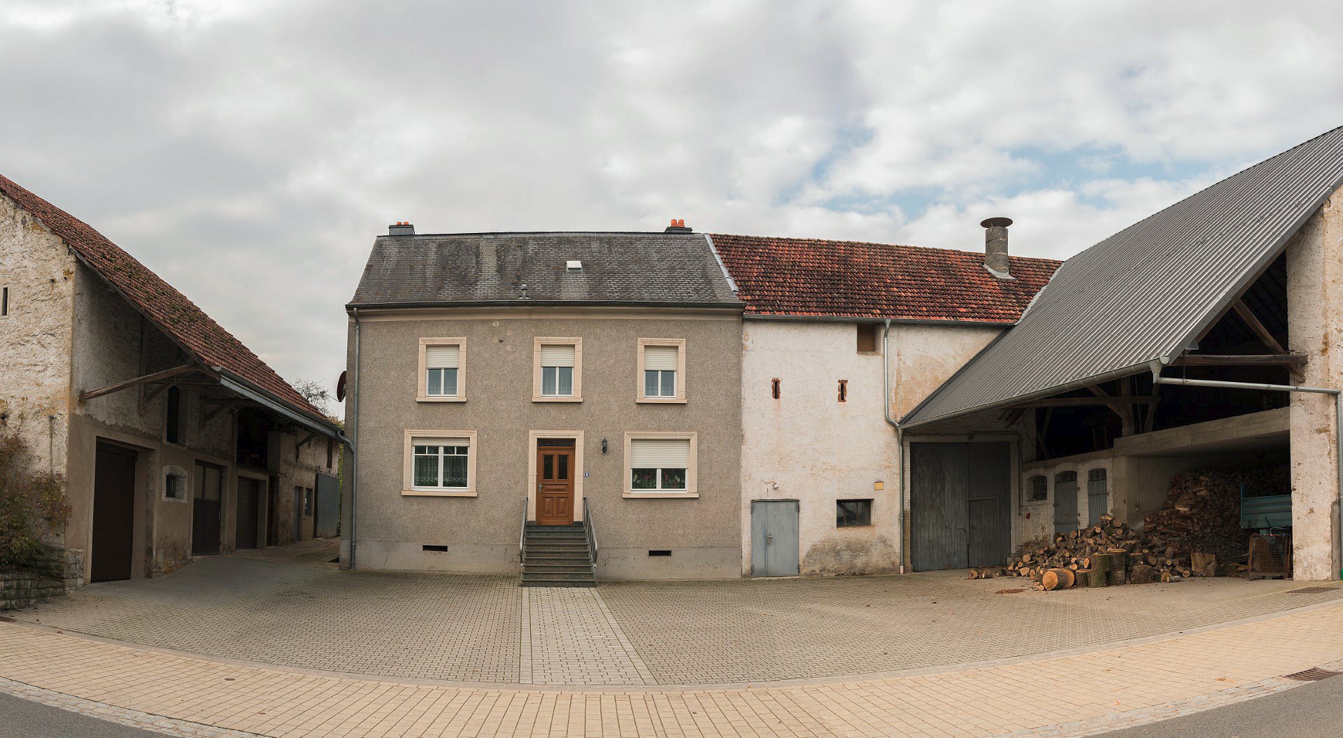 Onmogelijke opgave. Kan Wallonië of Noordoost Frankrijk zijn. Ontelbare plattelandsdorpen waar men dit soort plaatjes tegenkomt. De schuur rechts van het woonhuis heeft rode kruispannen, dwz. pannen die half om half over elkaar zijn gelegd. Waar dit type te vinden is.