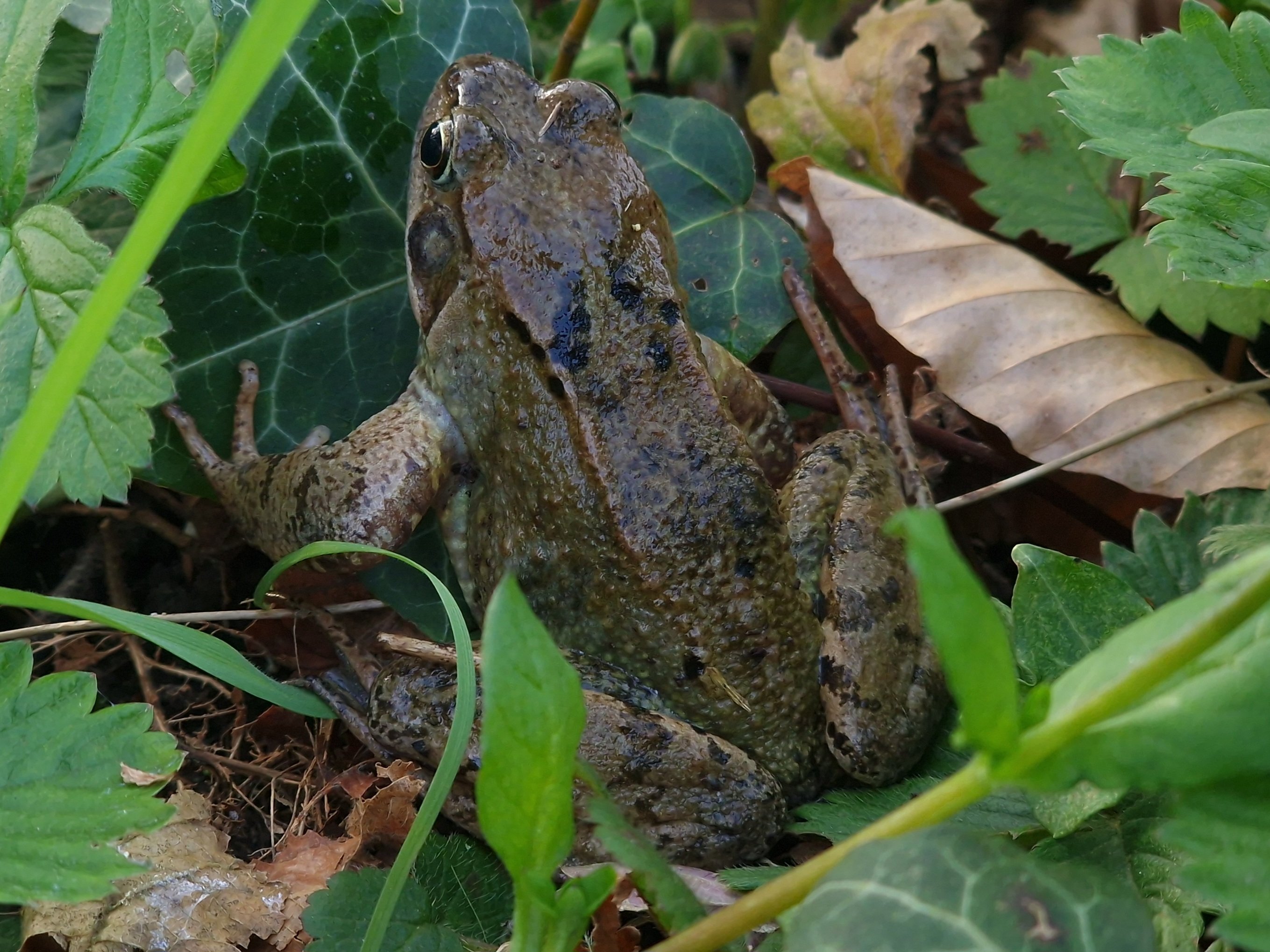 Hier precies in het midden, een dammetje over de brede sloot. De frater zat op een hekje dat daar bovenop staat.