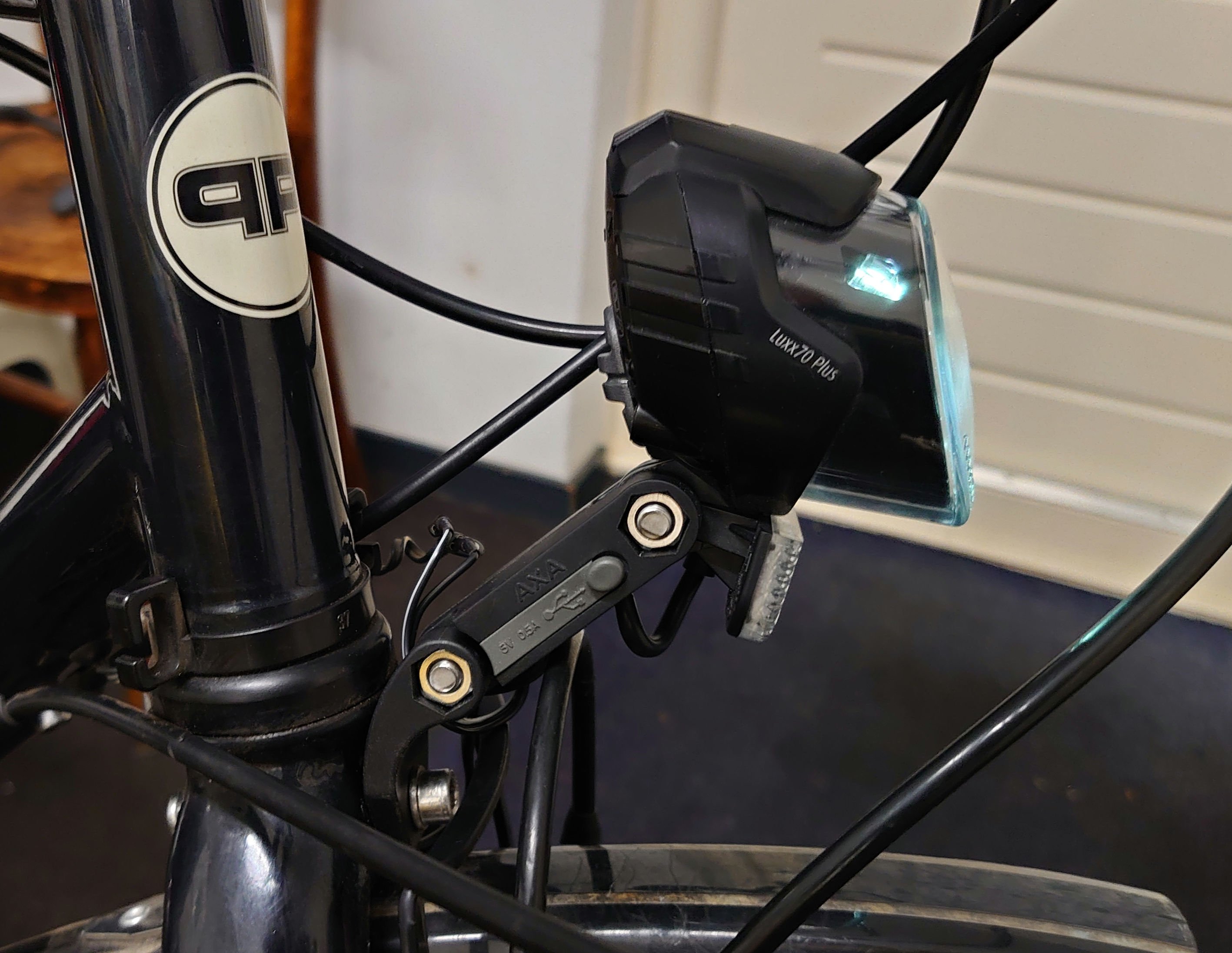 Een Axa Luxx 70 plus met USB 0,5 A laadstekker.