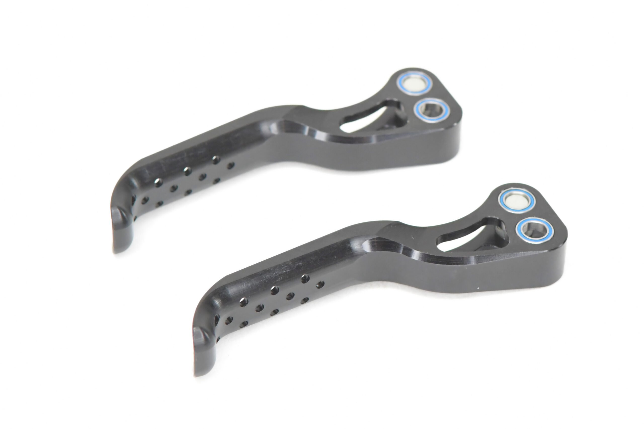 Setje hendels van rgtec gekocht voor mijn Formula Cura remmen. Deze zijn 10mm langer wat volgens de maker 15% meer modulatie en kracht oplevert. Ze zijn ook verkrijgbaar in de originele lengte of 10mm korter. Daar heb ik het echter niet voor gedaan. Deze hebben gesloten lagers in tegenstelling tot de plastic busjes in de originele hendels. Ik merk nu al dat daar wat ruimte op zit en daar heb je met lagers geen last van.