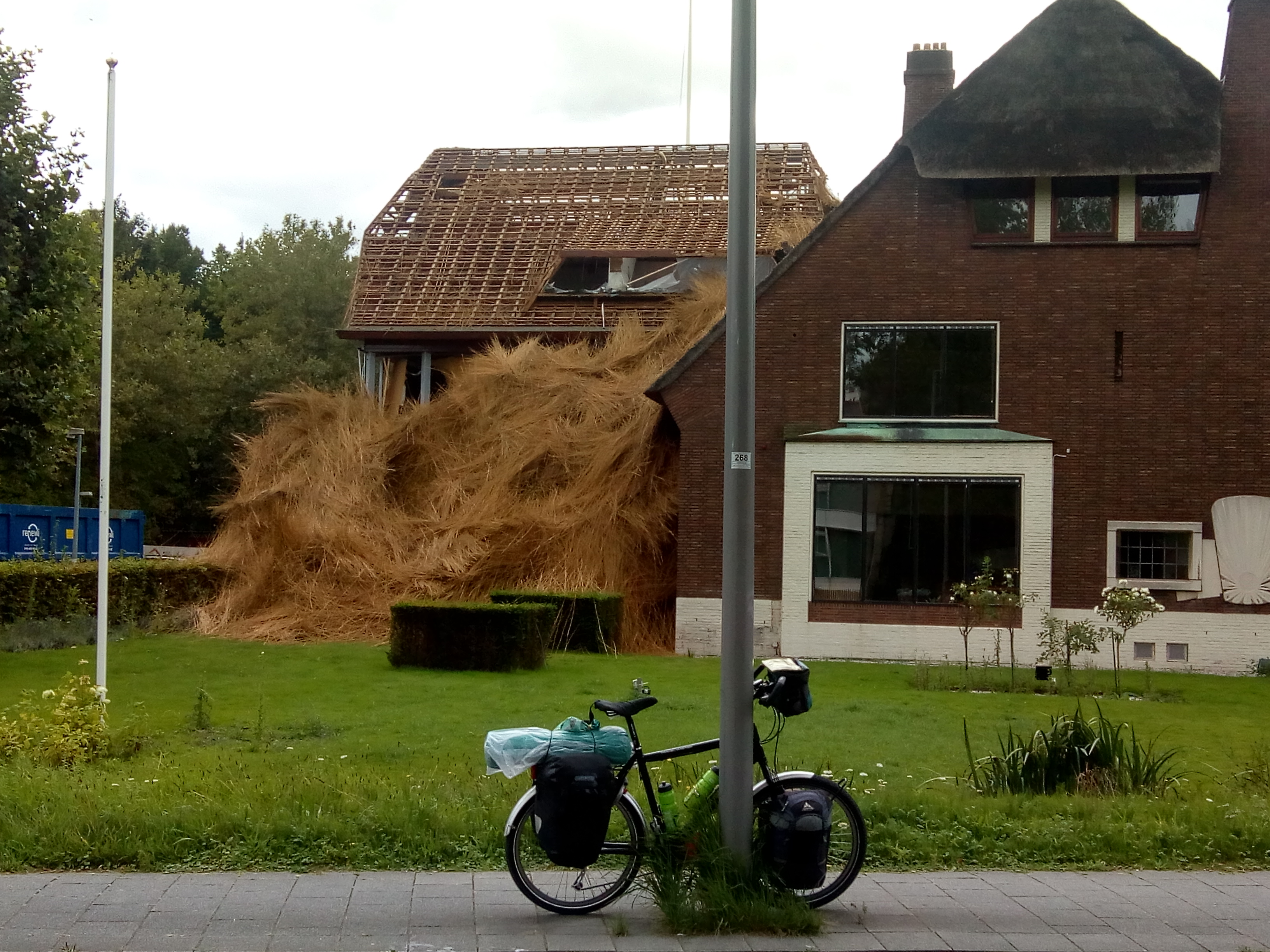 Dat riet wat er is afgehaald gaat er denk ik niet meer op. Komt nieuw riet voor, keurig aangevoerd in bossen. Maar ook dan nog een hele klus. Wel mooi, ook al is het wat brandgevaarlijker dan andere dakbedekking.