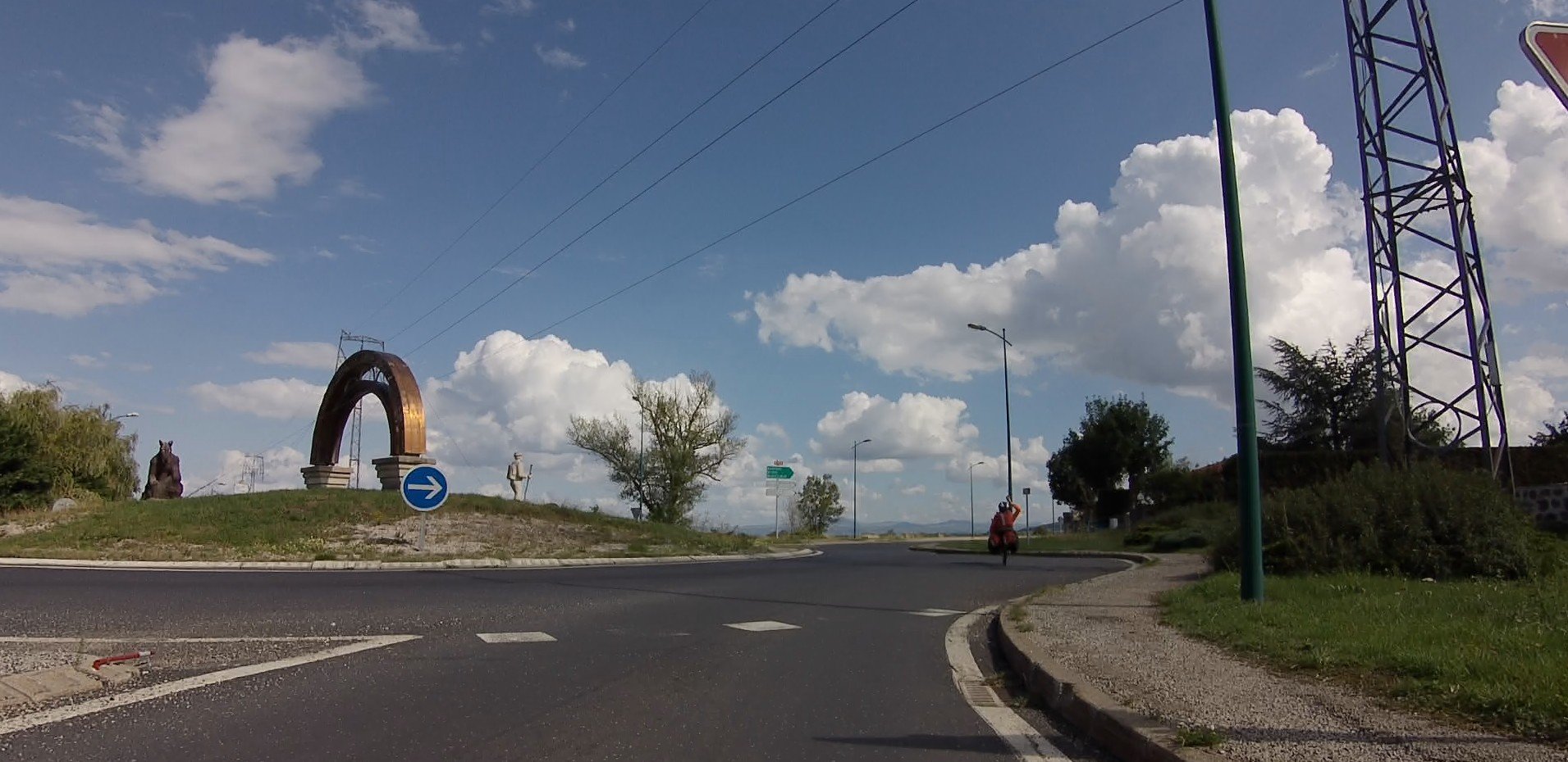 Na zoeken op "rond-point art marcheur arche" kwam ik op een site met een foto van de rotonde maar zonder een goede locatie aanduiding. Wel gaf de site aan dat het beest links op het Raad plaatje! de ‘La Bête du Gévaudan’ is.