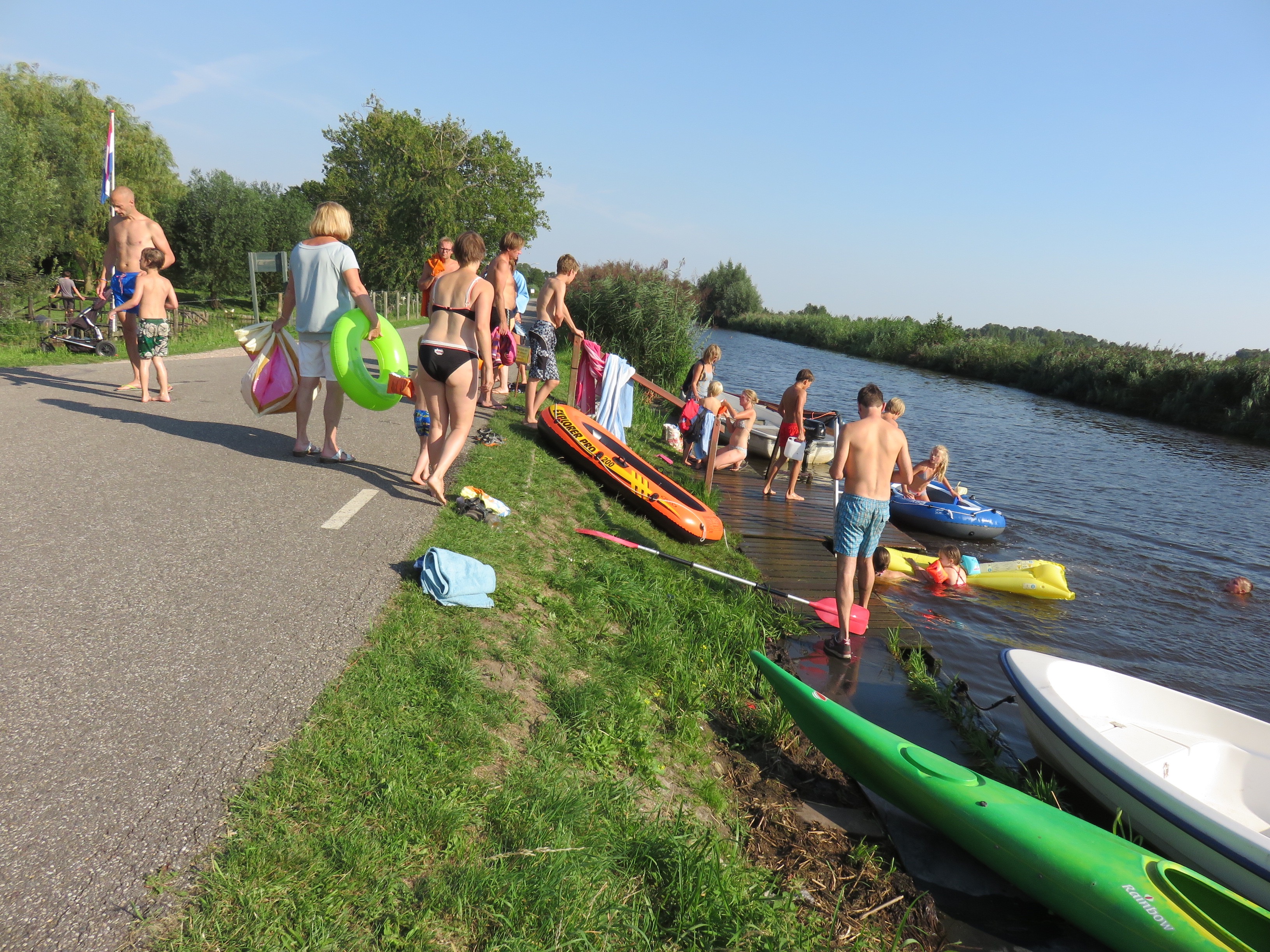 Wat vermoed ik: Zuid-Holland, bij een camping (boerderij camping?), de gasten hebben net besloten om samen wat waterpret te hebben, kanaal loopt oost-west, Grandonneur fietste er net langs en moest wachten totdat iedereen was overgestoken (het was zo druk dat hij in de berm moest). Zoiets.