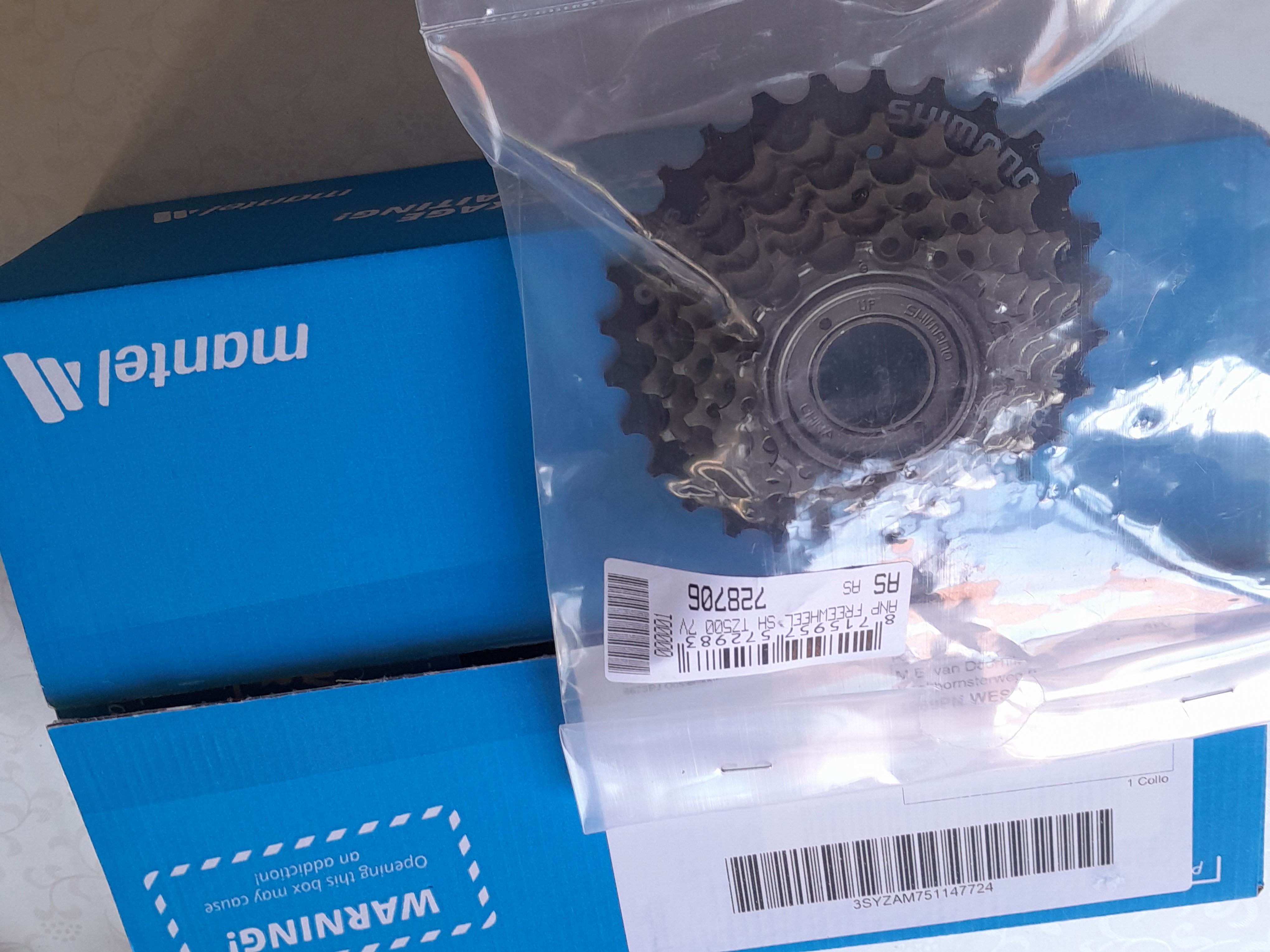 Vandaag het achterwiel eraf gehaald. De fietsenmaker had gelijk: de cassette bewoog wat los rondom de lagering in het schroefgedeelte. Helaas is 7 speed 14-34T nergens meer te krijgen. In 2016 gekocht bij Belga in Groningen, maar de zaak bestaat nu niet meer. Online geprobeerd, maar noppes. De foto's zijn erg moeilijk te beoordelen; ik heb een schroefcassette, maar ik zie ook "opstapelbare" tandwielen. Nooit duidelijke beelden hoe de opening in de cassettes eruit zien. Dan maar 7 speed 14-28T van Shimano besteld bij Mantel. Morgen in huis. Ik ga niet de halve provincie per auto op zoek gaan.
