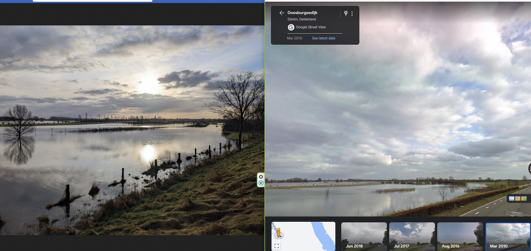 Ik herken op de achtergrond de kerktoren van Doesburg. Vanuit het NNO gezien, het Zwarte Schaar, bij dat natuurreservaat in het midden? De camerabeelden op die blauwe stippellijnen zijn echter niet wendbaar.