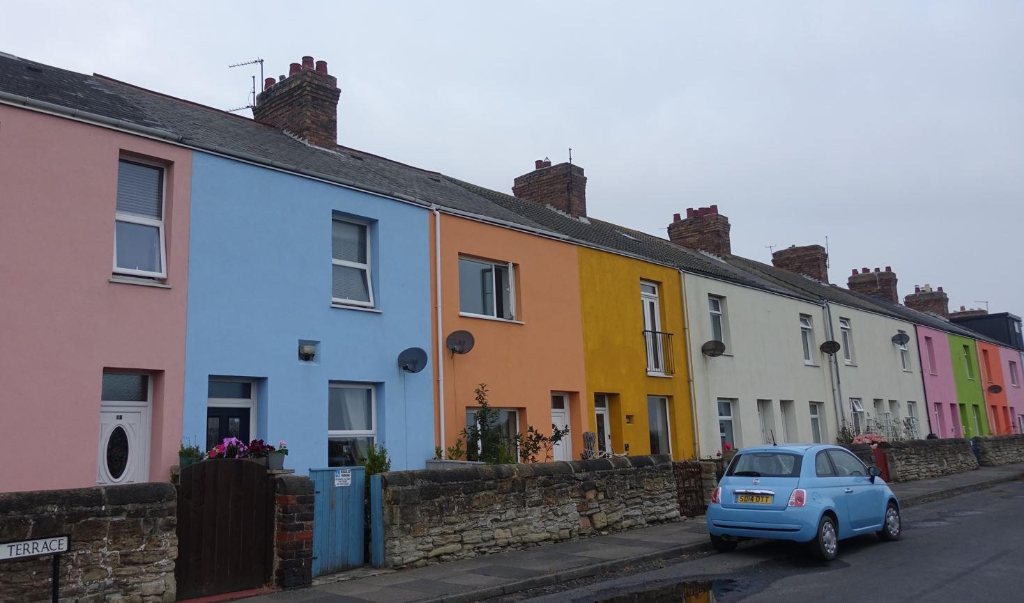 Het is in Camois, Noththumberland. Bijna zelfde plaatje gevonden door te zoeken op colorfull houses .zie link https://www.dreamstime.com/brightly-col ... e250044101