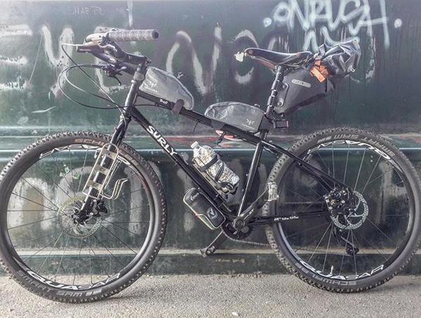 Mijn dochter presenteert hier mijn zelf opgebouwde Surly Ogre.