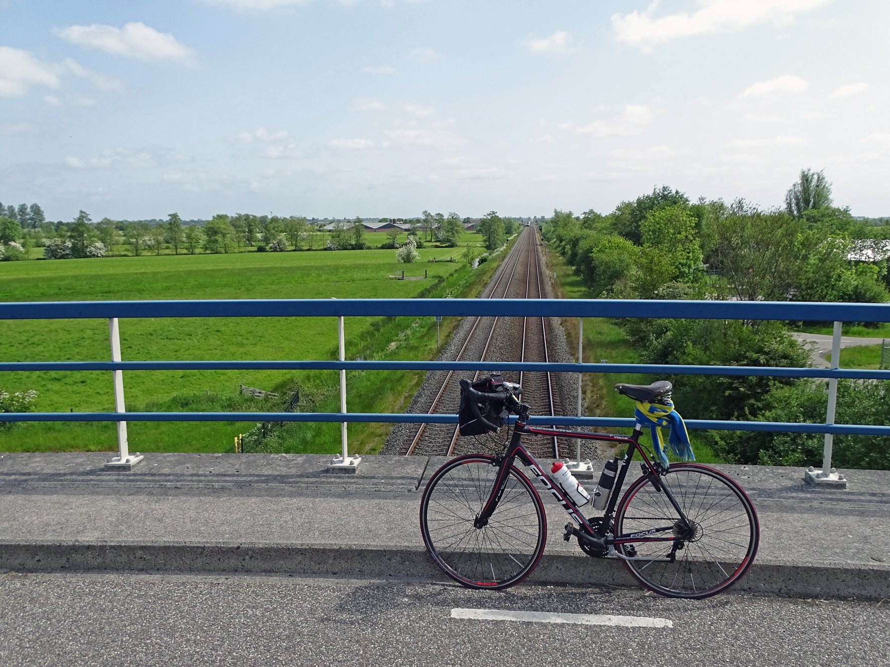 Op de foto had ik m'n geel-blauwe sjaal (Sverige staat erop) om de zadelbuis geknoopt, want het was die ochtend nogal fris. Kon ik nergens anders kwijt.