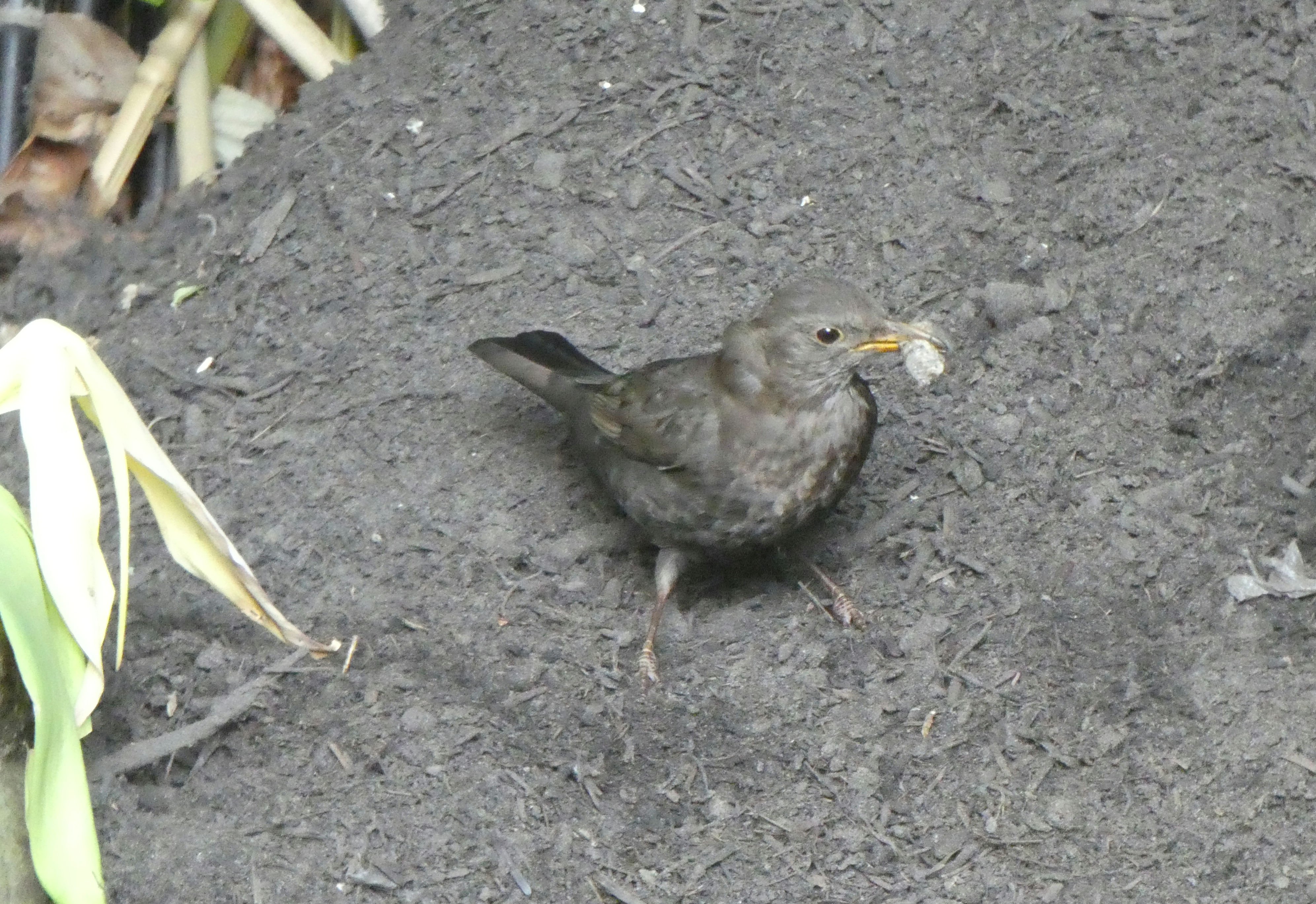 Dit is wat er rest van een feestmaal voor het merelpaartje in onze tuin.