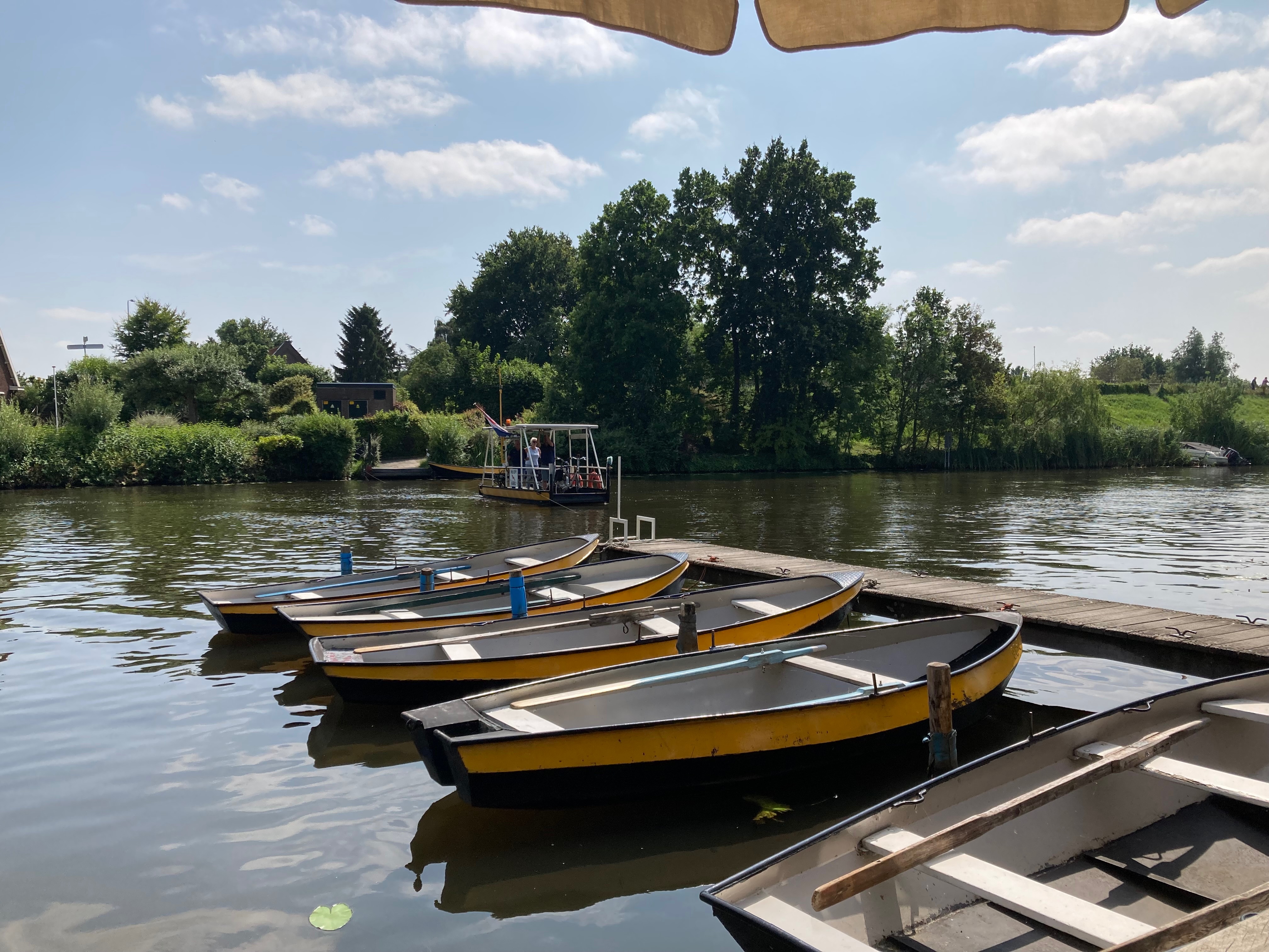 Het pontje staat niet op de foto, en het gele hokje ook niet, maar als je achterom kijkt naar het huis zie je dat het klopt.