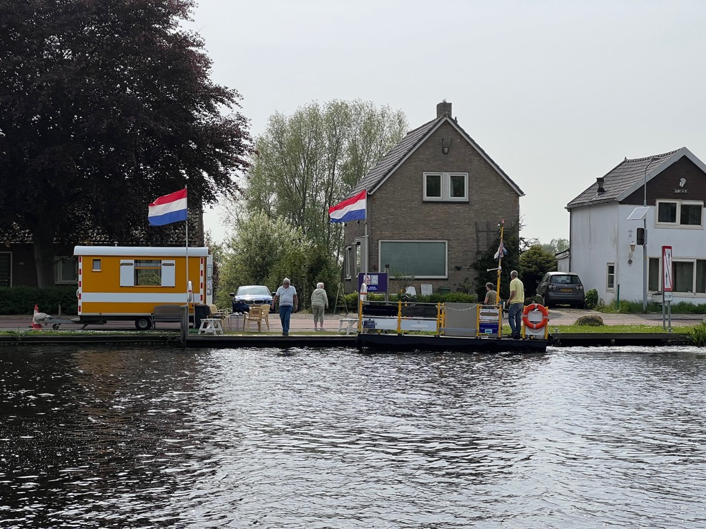 Het pontje staat niet op de foto, en het gele hokje ook niet, maar als je achterom kijkt naar het huis zie je dat het klopt.