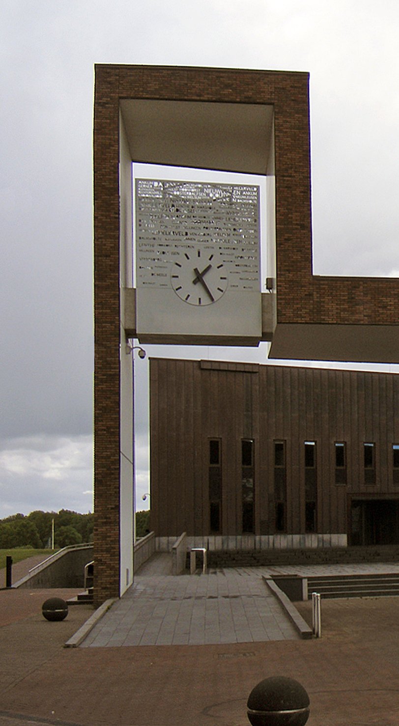 Gevonden via: "klok gemeentehuis". Waarom dit zoek zoekcriterium? Had de indruk dat de gegraveerde letters plaatsnamen waren. Dat klopte dus.