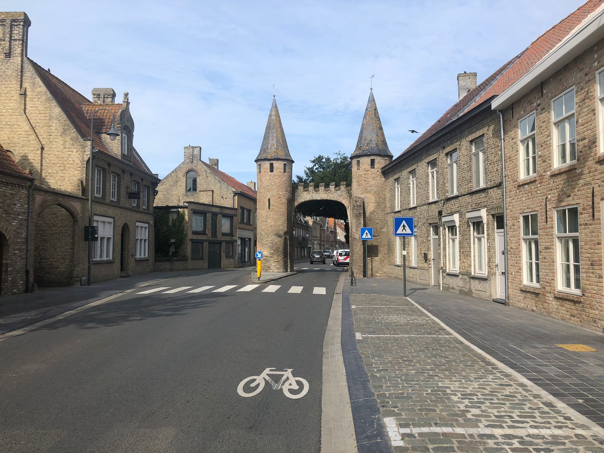 Ik vind die Westpoort eigenlijk wel een licht geval, bijna folly-achtig. Als ik het goed begrijp, was Lo-Reninge maar een piepklein stadje, vergelijkbaar met het Gelderse Bronkhorst. Dat zo'n pittoresk beeld de zware verwoestingen van 1914-'18 in deze Westhoek heeft doorstaan, mag wel verwonderlijk genoemd worden.