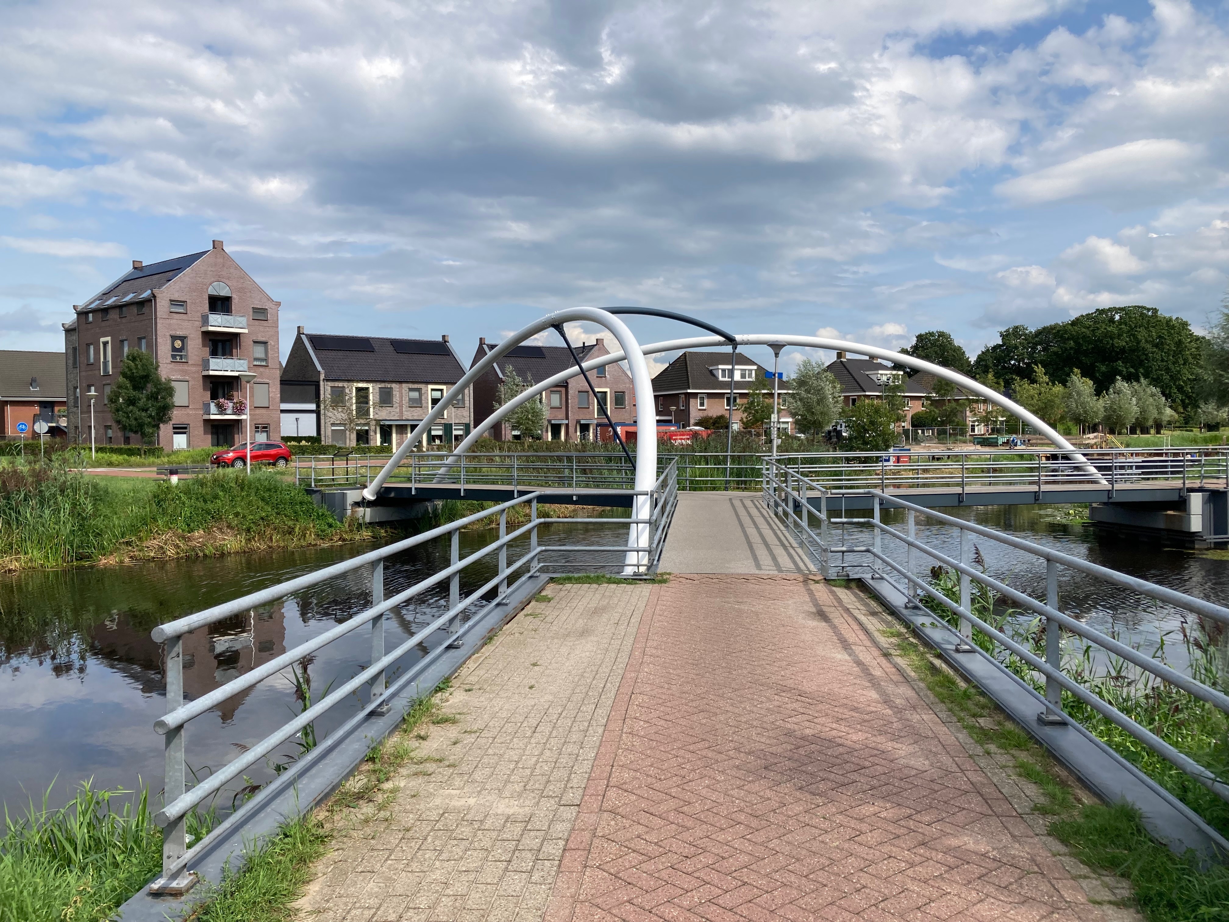 Ja, kunstwerk staat aan het water met stukje verderop een (spoor-) brug over dit water. Maar verder zoeken op kunstwerk water geeft nog geen oplossing. Is het in Drenthe?