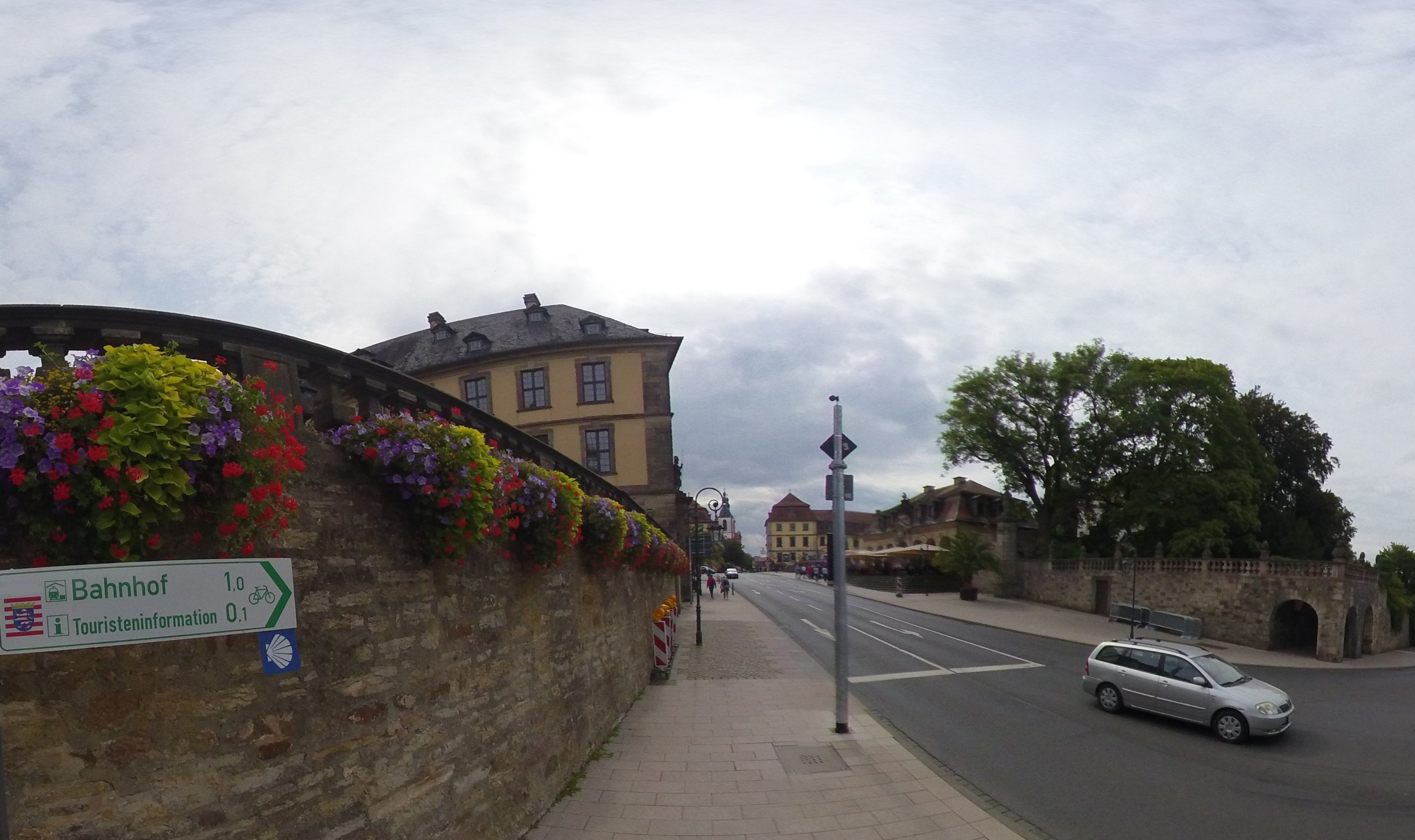 Helemaal links zie ik het wapen van Hessen. Ik heb hier een Duitse autonummerplaat met vooraan FB (Friedberg) erop, met daarnaast hetzelfde wapen. En dan is er nog een schelp van de Jacobsroute te zien. Maar ondanks de lijst van Bahnhöfe in Hessen nichts gefunden....