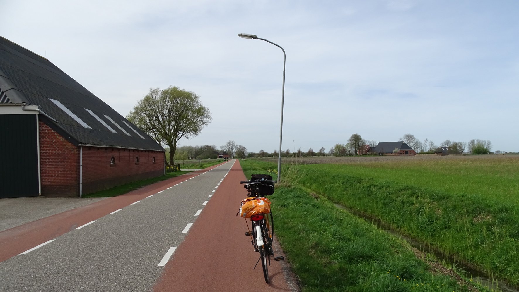 Renel heeft het goed, hoe heb je dat voor mekaar gekregen? De foto is van 6 april j.l., ik ging naar een vergadering in Warffum, 25 minuten fietsen afstand. Wel veel wind.