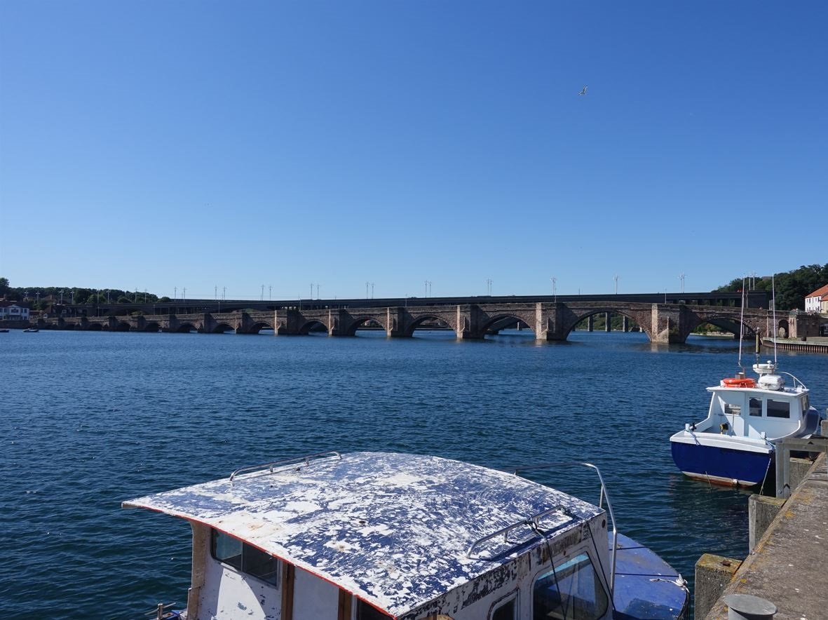 Berwick Bridge, built in 1634, the oldest of three bridges spanning the River Tweed at Berwick-upon-Tweed, Northumberland, England, Uk.