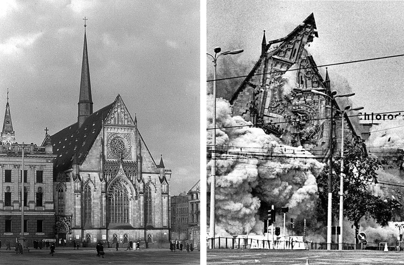 „Het ding moet weg! Als ik uit de opera kom, wil ik geen kerk meer zien." En dat gebeurde met het opblazen van de kerk in 1968. Hetzelfde gebeurde met de rest van het gebouwencomplex. Protesten van de bevolking werden in de kiem gesmoord met arrestaties.