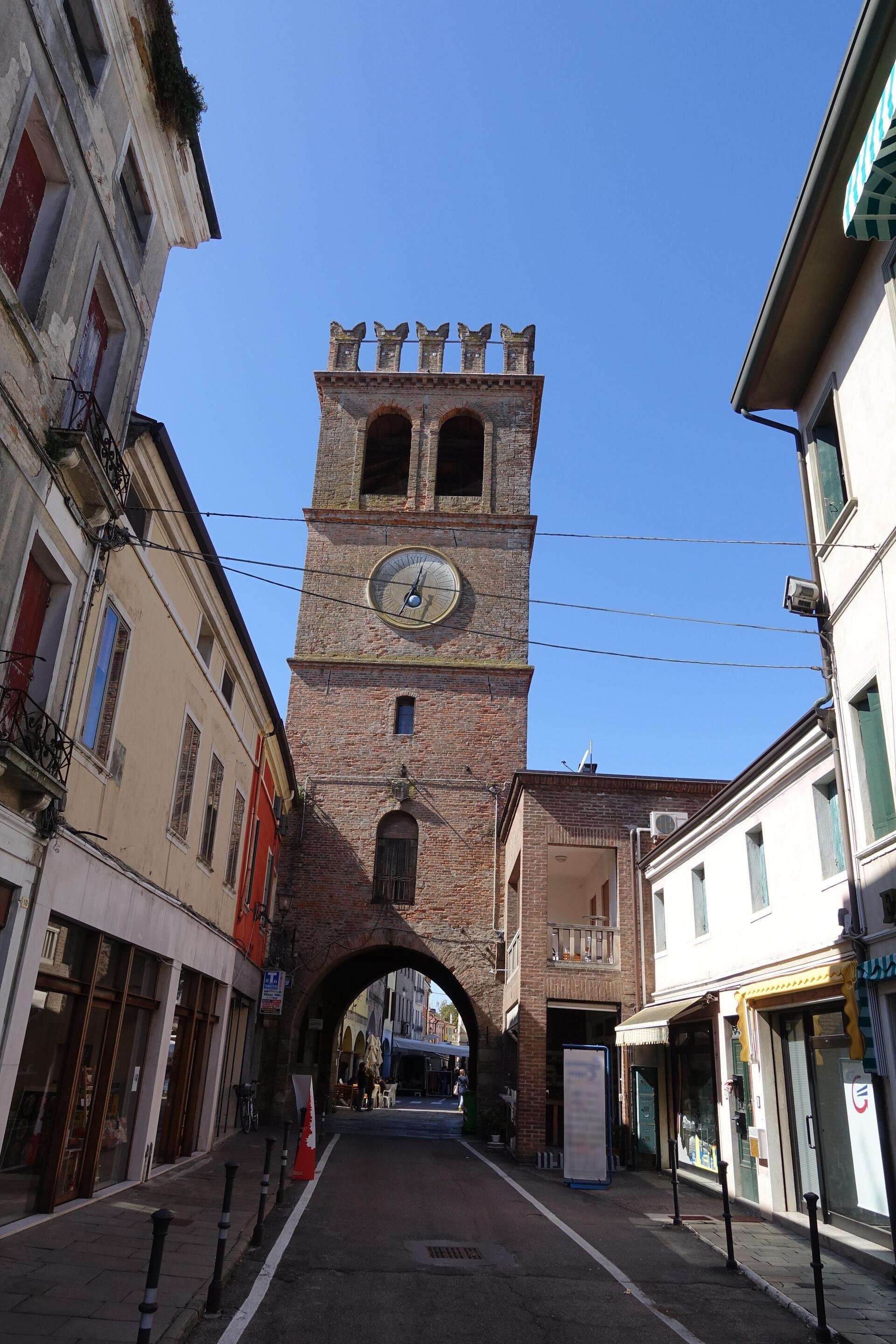 Heb verschillende zoektermen gebruikt, zoals "Porta della città del campanile in Italia" (bijna de helft van de plaatjes bestond uit die bekende kerktoren in het Resia-stuwmeer), maar nu pas gelukt met "La torre dell'orologio in Italia" op Google afbeeldingen: in Lendinara, Veneto.