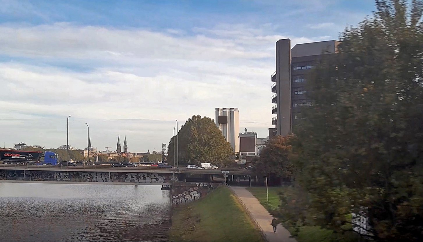 Ja, dat is 'em. Eigenlijk gefilmd door het raam van de trein naar Leer. Ik heb op de computer de film op een bepaald moment stilgezet en er een printscreen van gemaakt. Het logo van Beck's bier geblurd.