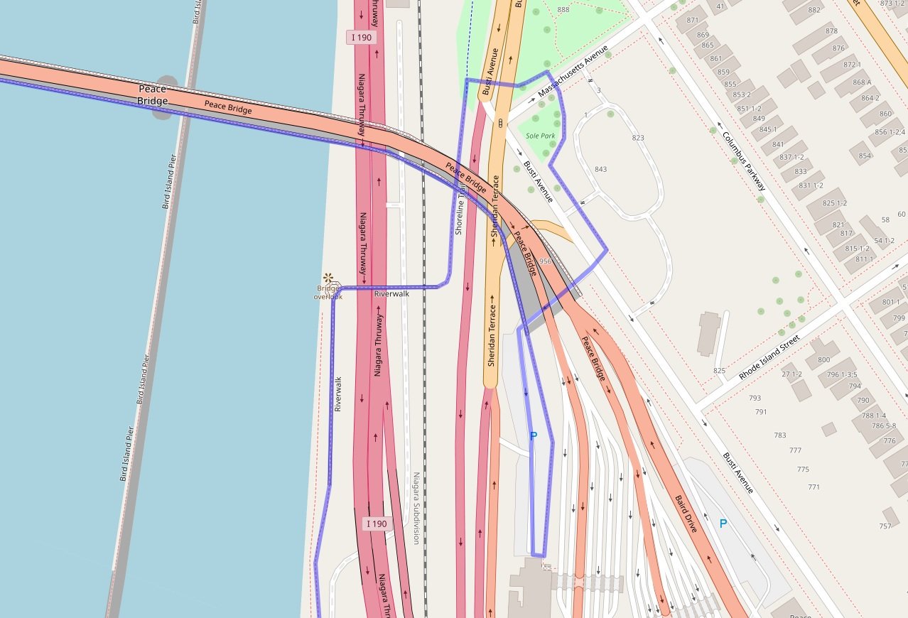 Heel goed, WillemT. Ik was op fietstocht van Boston naar Toronto. De overkant is dus Canada. De foto heb ik eh... in 1973 genomen. Ik was toen een jonge vent van 22 jaar en dit was al m'n tweede fietstocht in Amerika.