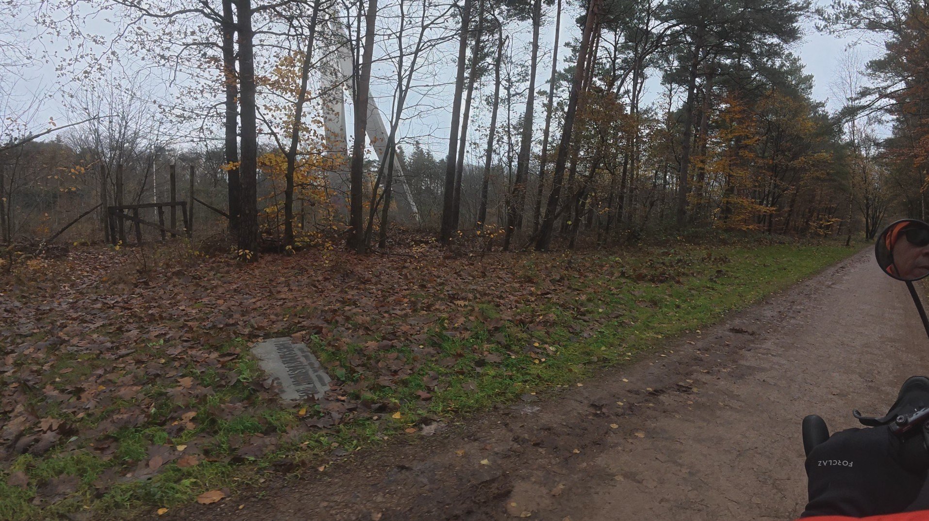 Er staat een gammel hek waar je makkelijk toegang kunt verschaffen. Aan de overkant een lichtmast. Rechts nog een lichtmast (tussen de 3e en 4e boom rechts van die „verkleinde Erasmusbrug"). Een ijsbaan soms? Of een militair iets?