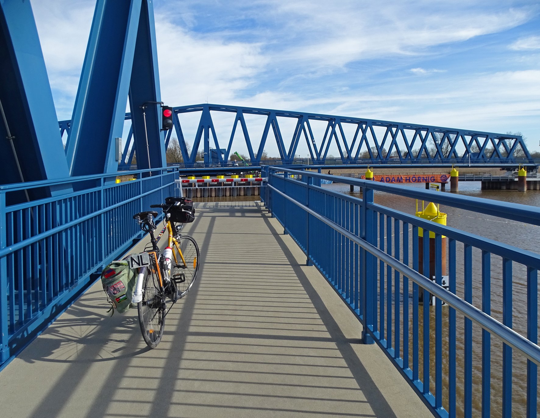 Sehr gut, Stelvio. Inderdaad de Friesenbrücke bij Weener. Zo'n mooie zonnige dag en ik wilde daar eens een kijkje nemen. En natuurlijk gehoopt om daar overheen te fietsen. Maar thuis eerst geraadpleegd: