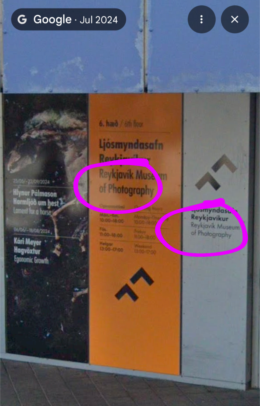 Op plaatje lees ik: Páll Stefánsson en dat is een bekende fotograaf op IJsland en verder Olaf Otto Becker, een fotograaf die 20 jaar op Groenlandzit. Lijkt me dus een tentoonstelling van deze 2 fotografen. Heb paar musea afgezocht maar nog niet gevonden.