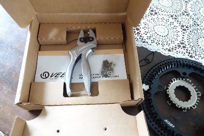 Ik kwam er zo achter dat ik een 5 arms cranckstel voor een 110BCD tandwiel heb. Die variant biedt Veer niet aan (binnenkort ook hierin veel meer keus kreeg ik te horen) maar er is wel een adapter voor 110BCD naar 130BCD, en dan kon ik een 130BCD voortandwiel nemen.