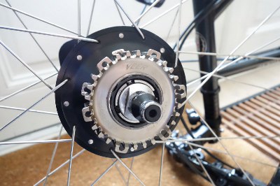 Aan de aandrijflijn is niets veranderd; nog steeds een 42 tands tandwiel. Eigenlijk zijn alleen de bevestigingsgaten voor het tandwiel gewijzigd, ter voorbereiding op het voortandwiel van Veer; de volgende stap.