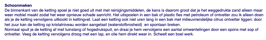 gaat lang mee. Dus als zelfs zeer (arbeids)intensief kettingreinigen,