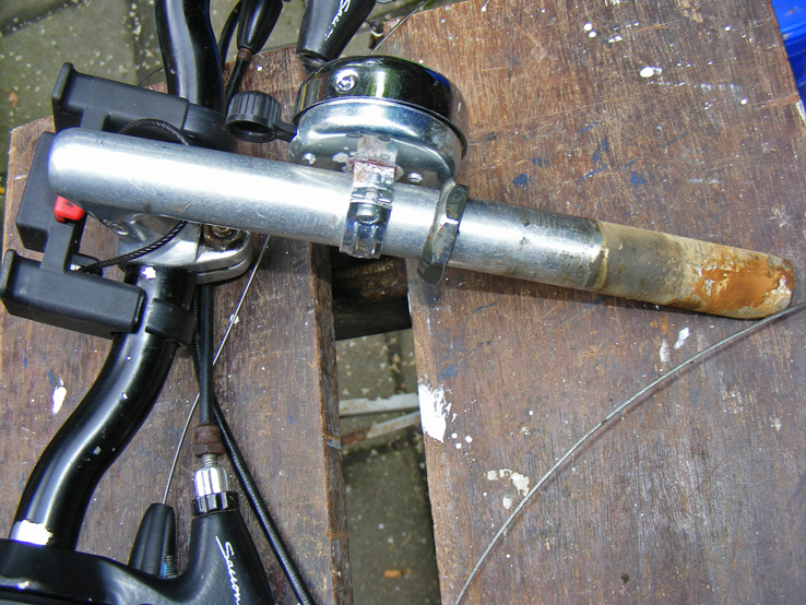 Ik weet dat er aluminiumoxide tussen de buis en het frame zit en in het slechtste geval kan ik aluminium oplossen met gootsteenontstopper, maar dat bewaar ik echt voor het slechtste geval.