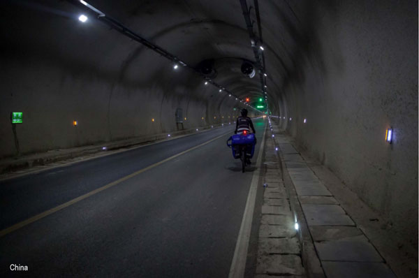 This cycling paradise didn’t last forever. A few hours later we were in something close to hell, spinning our wheels through a 5 kilometre long unlit/unfinished tunnel with water dripping from the ceiling manoeuvring our way around bulldozers and construction crews. It was the strangest tunnel I’ve ever encountered, It’s actually a maze of tunnels with roads branching off helter-skelter. It’s a wonder the whole mountain doesn’t collapse. Anyway, the Yangtze stretch was fabulous, so I choose to just block the tunnels from my memory.