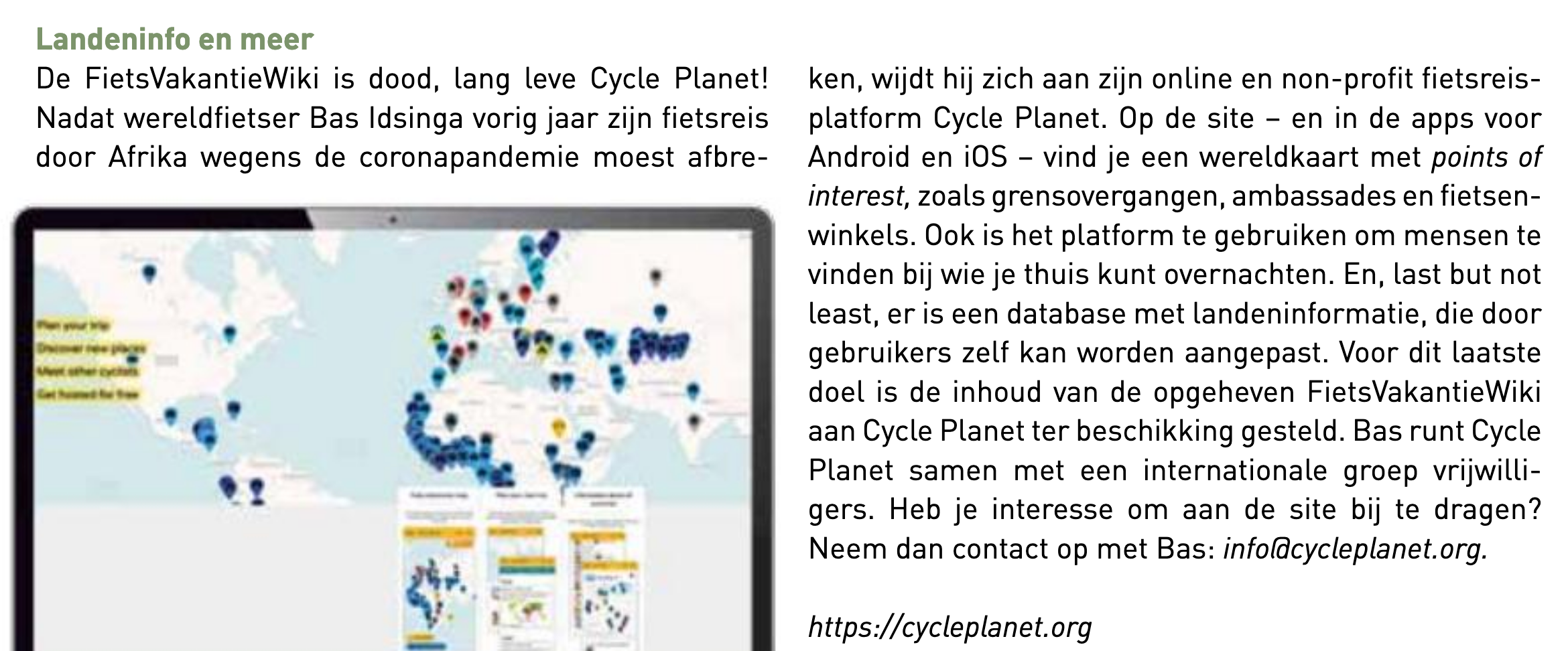 Is daar ook iets mee gebeurd? https://cycleplanet.org/countries geeft mij een "Oops. Nothing here..." (404)is de inhoud van de opgeheven FietsVakantieWiki aan Cycle Planet ter beschikking gesteld