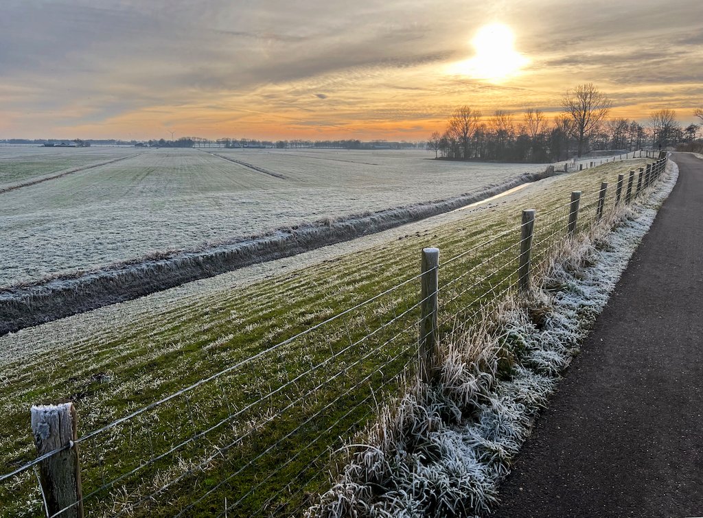 Het was vandaag wel fris, maar het was een prachtige rit met witte landerijen en een laaghangende zon.