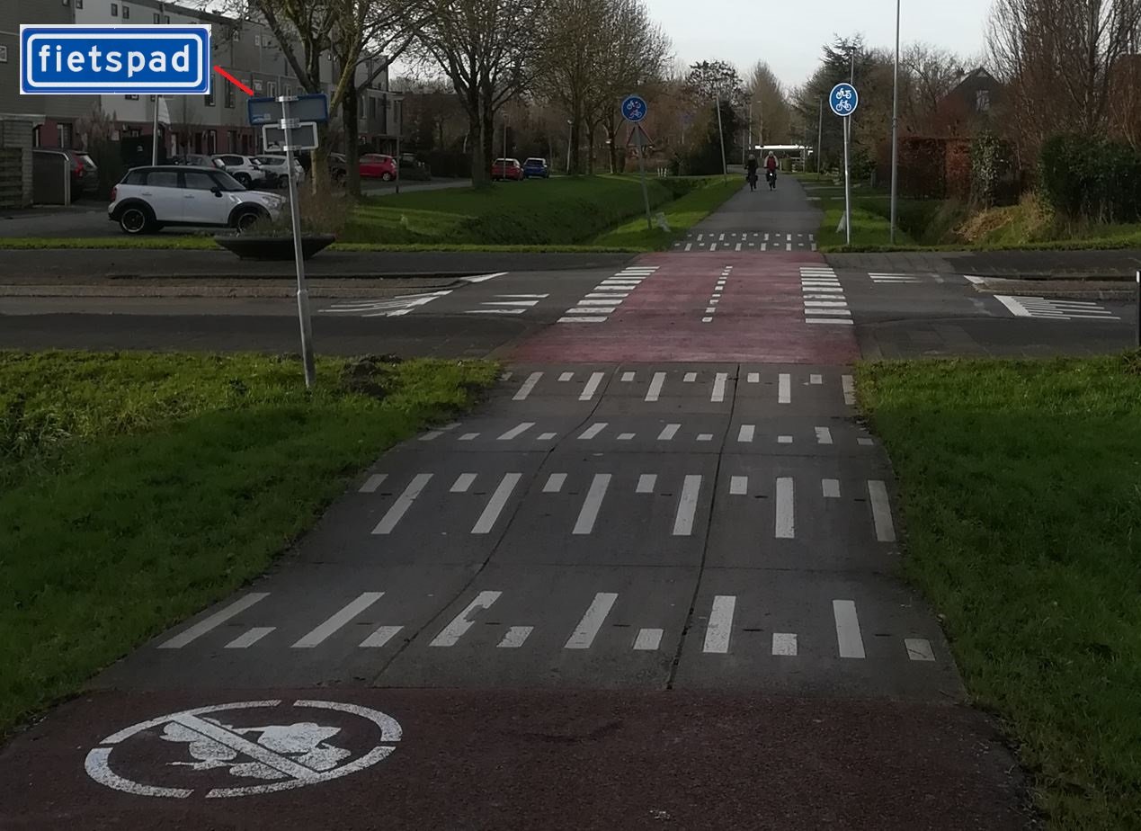 De middelste foto zaait wel verwarring: rechts een blauw bord met fiets en bromfiets, maar het linker bord is rood doorgestreept en dat voor hetzelfde pad :?: