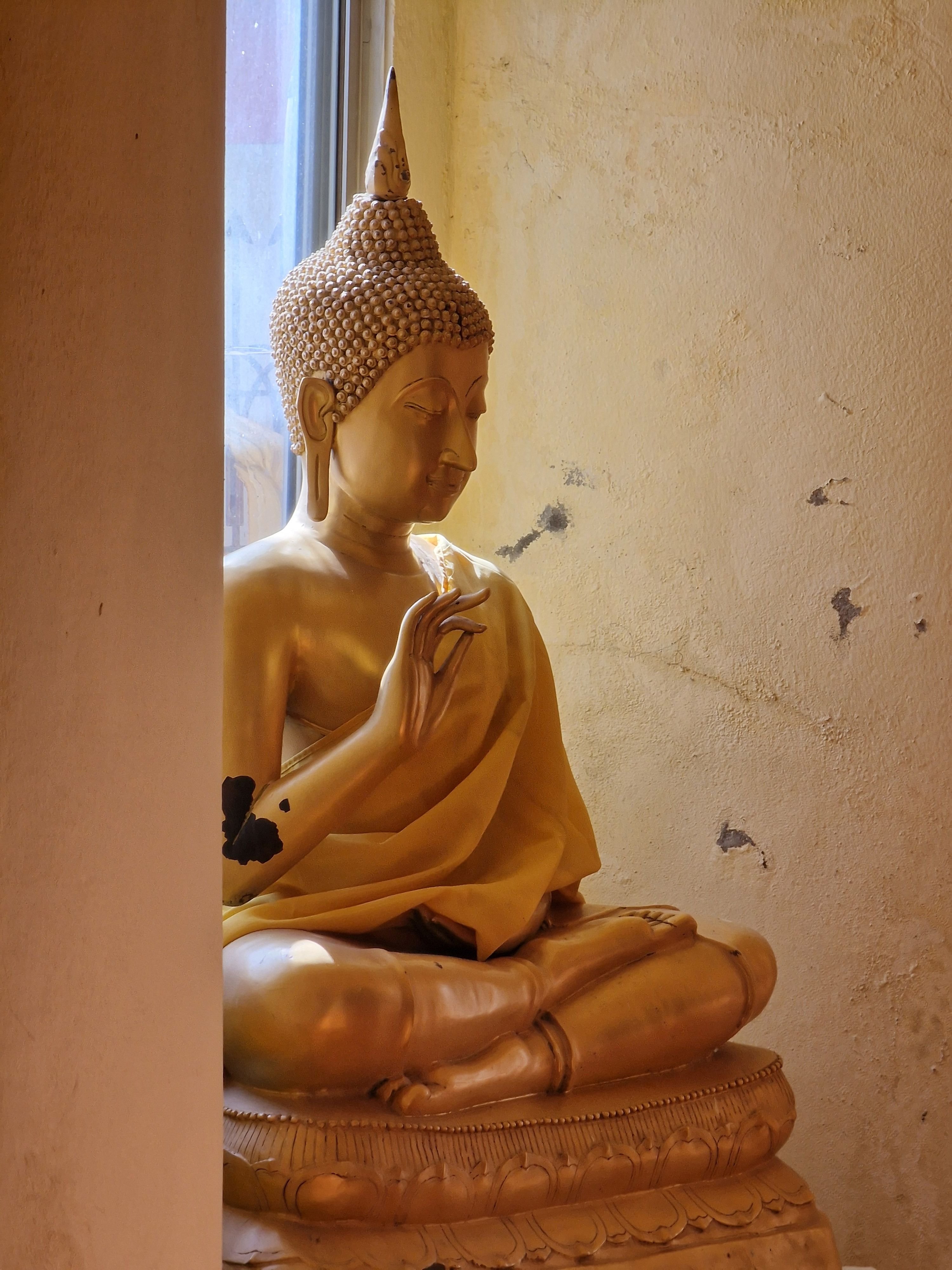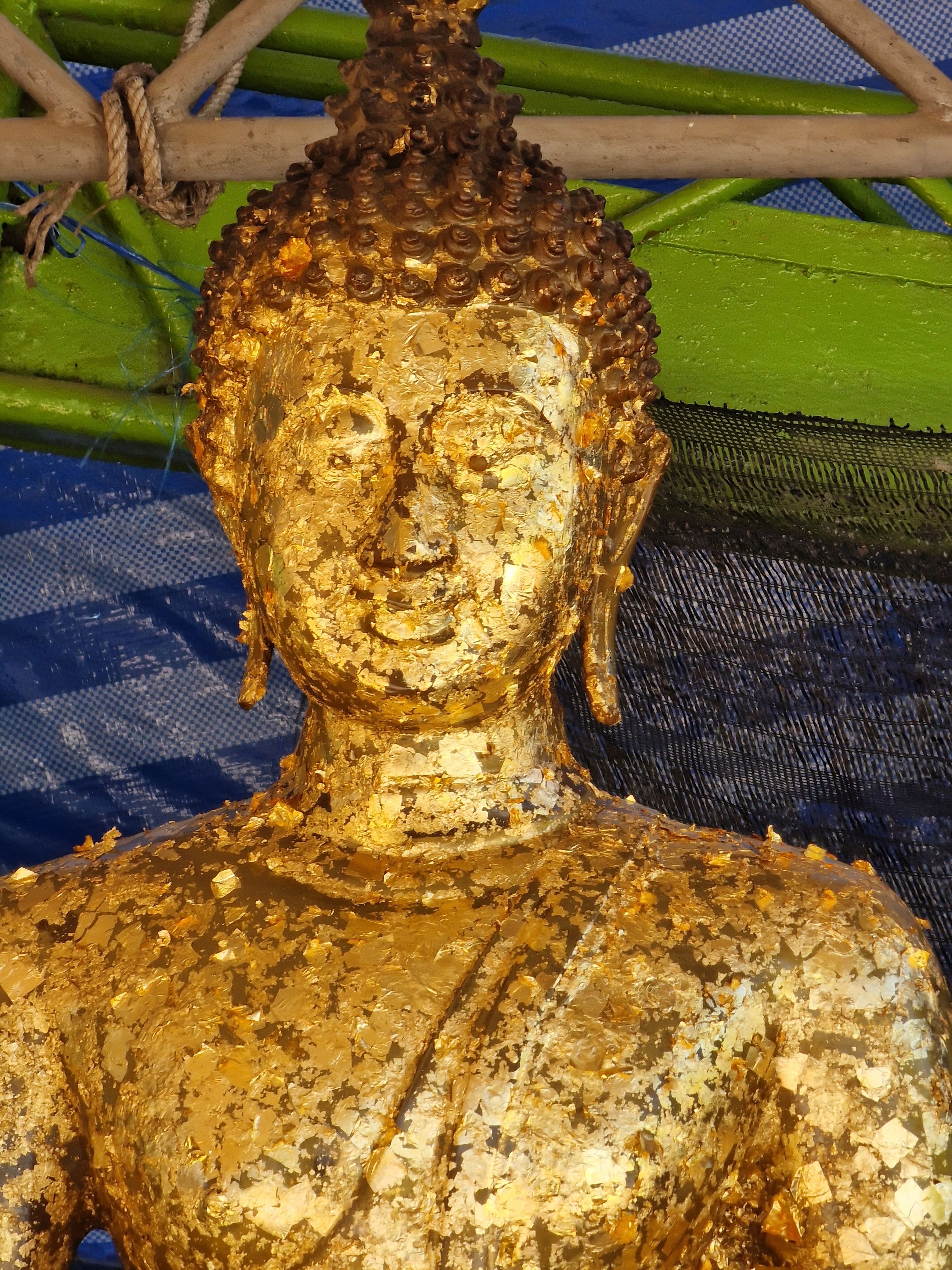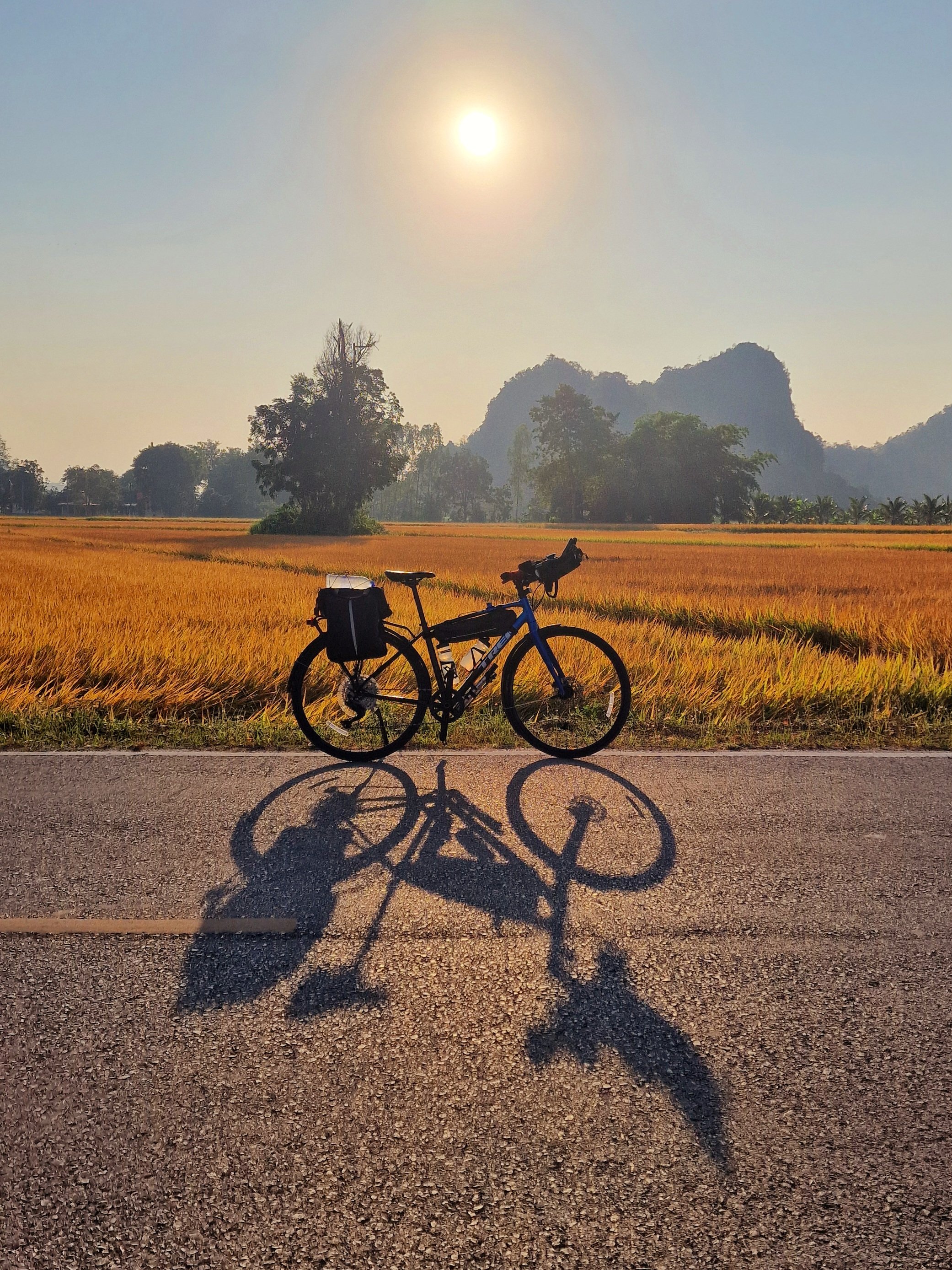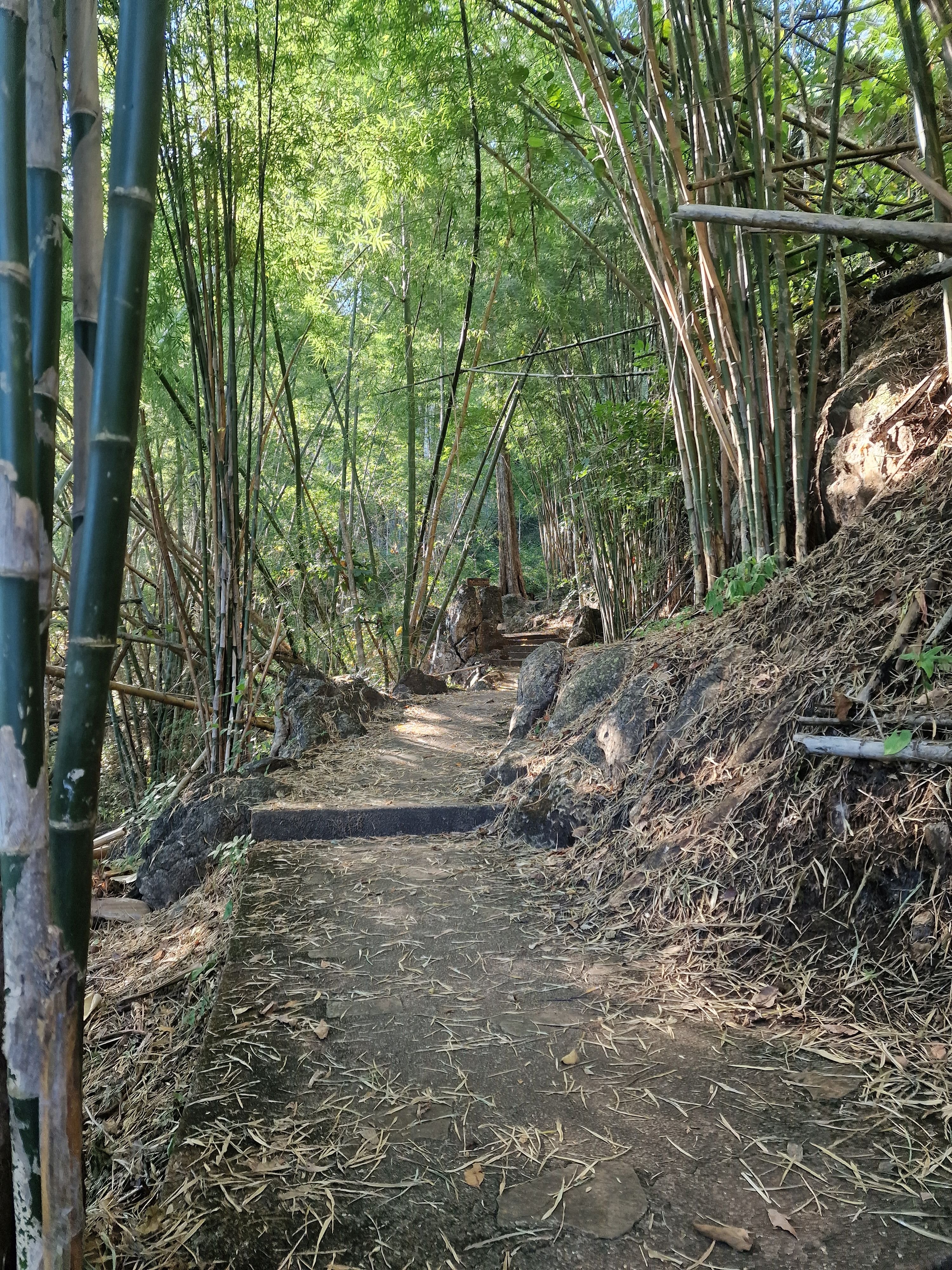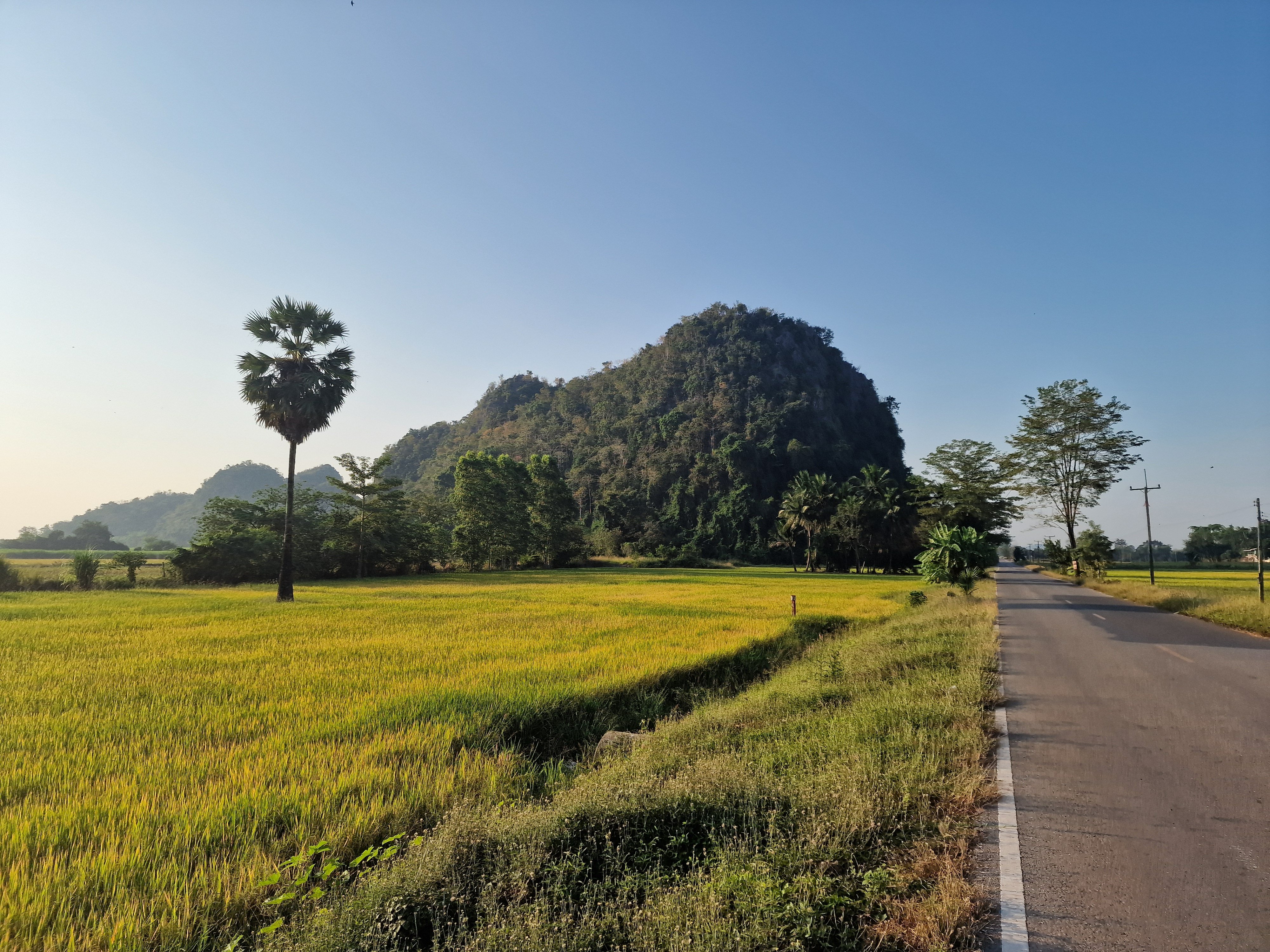 Na een dagje professioneel luieren sluit ik de reis af met een bezoekje aan de Erawan Falls. Tijd voor een refresher want het is reeds van 2000 geleden dat ik de watervallen gezien heb. Tijdens de taxirit zie ik mijn eerder vermoeden bevestigd: de omgeving is wel mooi, maar de weg is bij tijden smal, druk en niet zo aangenaam om te befietsen. Vooraleer ik het toeristisch krioelnest Erawan bezoek brengt mijn chauffeur me naar Phra Tat Cave, een tiental kilometer voorbij de watervallen. De dame aan de kassa van het park verkoopt me haar eerste ticketje van de dag – het is er bijzonder rustig. De weg naar de grot loopt doorheen bamboebossen, is mooi afgewerkt en in bijzonder goede staat.