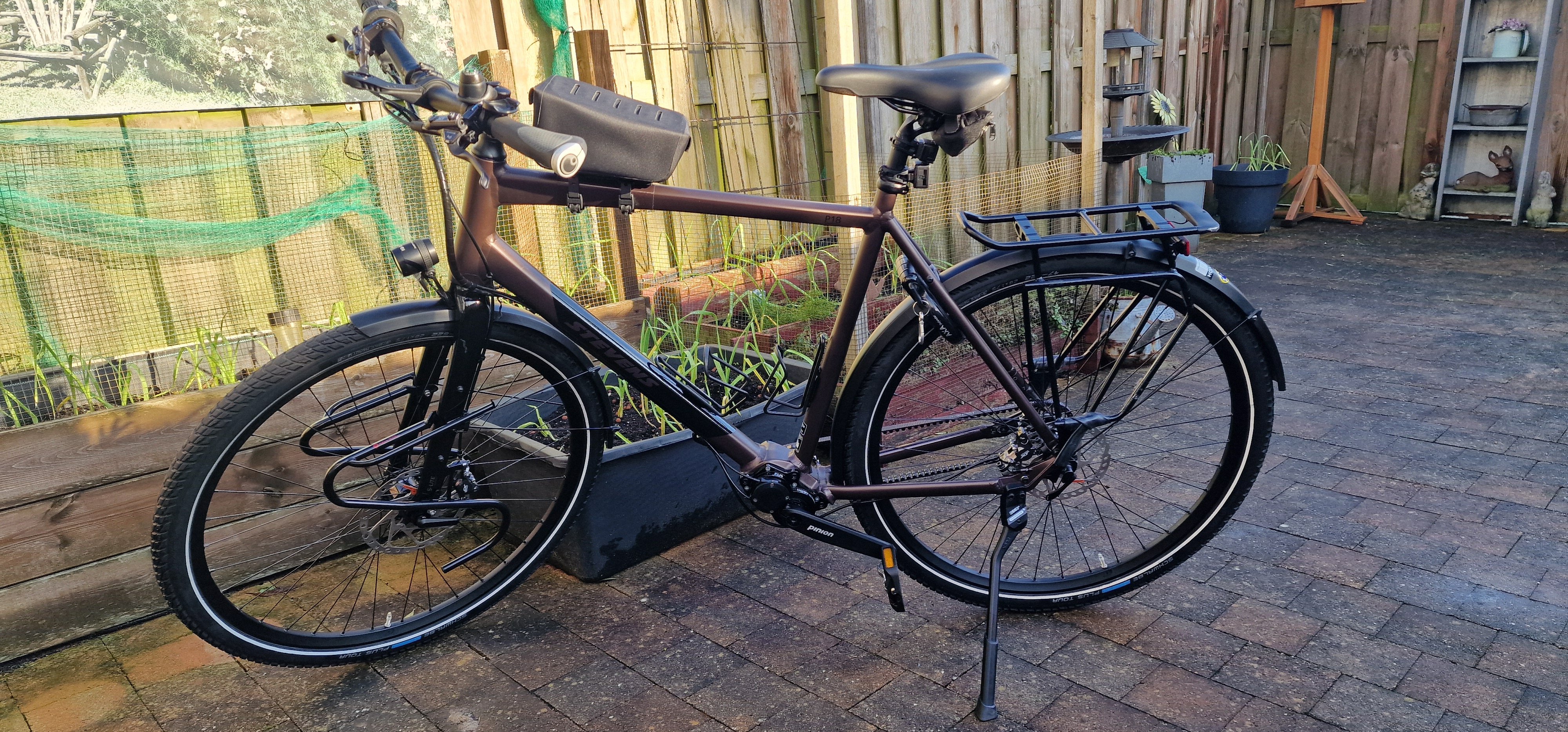 Op een heel kleine beschadiging na op de rechter rem hendel, welk nu bij getipt is, en op het metaal van het handvat gelukkig geen andere schade.