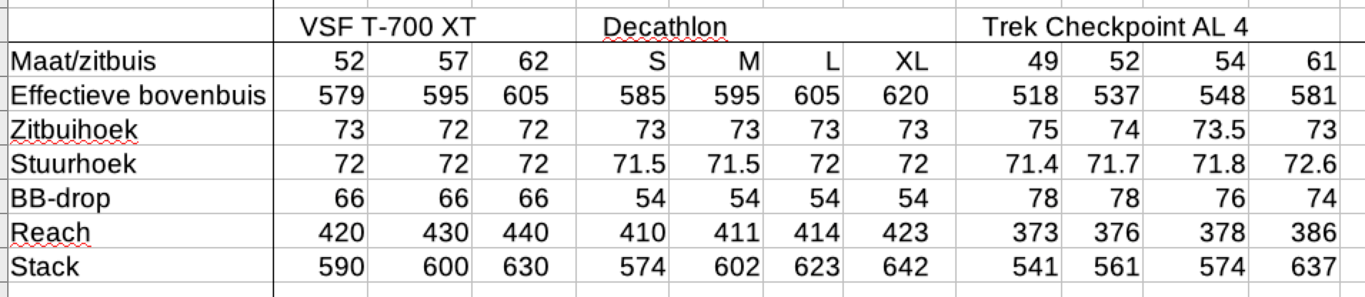 Deze discussie bevestigt voor mij nog maar eens dat je best stack en reach gebruikt om frames te vergelijken. En daaruit kunnen we m.i. afleiden dat Decathon met deze fietsen niet mikt op de comfortfietser die graag rechtop zit (tenzij deze fietser graag naar een spacertorentje kijkt).