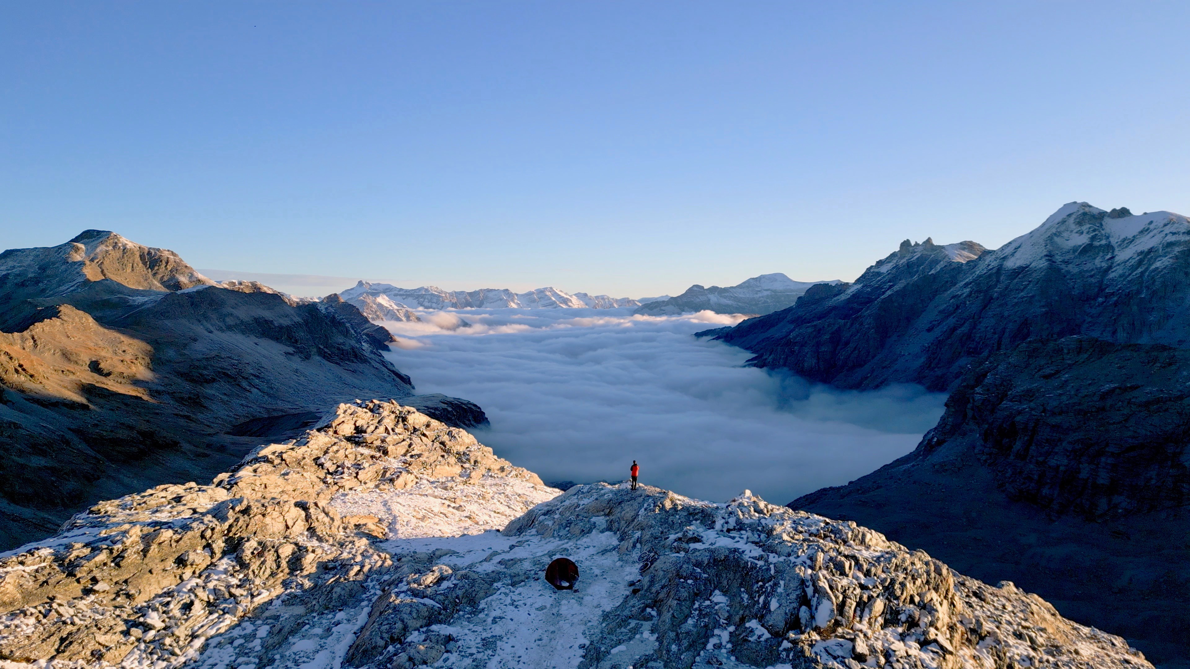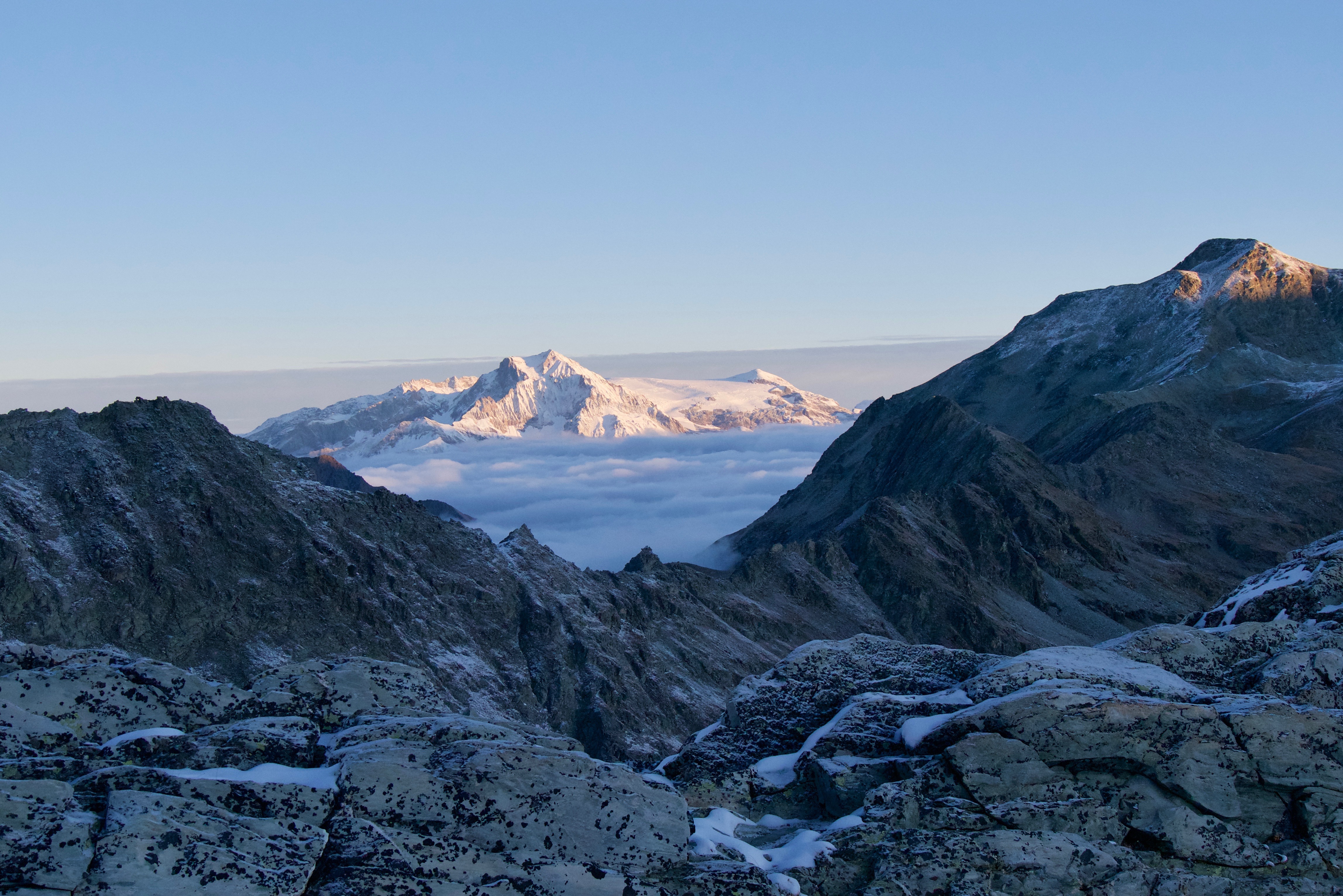Na een welverdiende rustdag in Bussoleno, ben ik in een ruk naar Viu gereden, over een ruim 2000 meter hoge pas die volgens mij de Colombino, Colombano of Colombere heet, maar op geen enkele kaart is terug te vinden onder een van die namen. Vanaf de top had ik een schitterend uitzicht over een woest schuimende en oogverblindend witte wolkenzee. Viu was uitvalsbasis voor twee lange dagtochten en een kortere als bonus. Ik zat er in een oude boerderij met enkel glas en een pelletkachel, die ik regelmatig flink opstookte. Niets lekkerder dan 's ochtends vroeg ontbijten bij het vuur terwijl het buiten nog aardedonker is.
