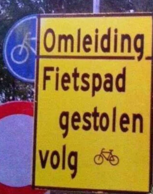 Deze kwam ik van het weekend tegen nadat ik een stukje om moest rijden om dat de brug weg was. En hoewel ik daar niet om moest lachen moest ik wel glimlachen toen ik dit aan de andere kant zag :D