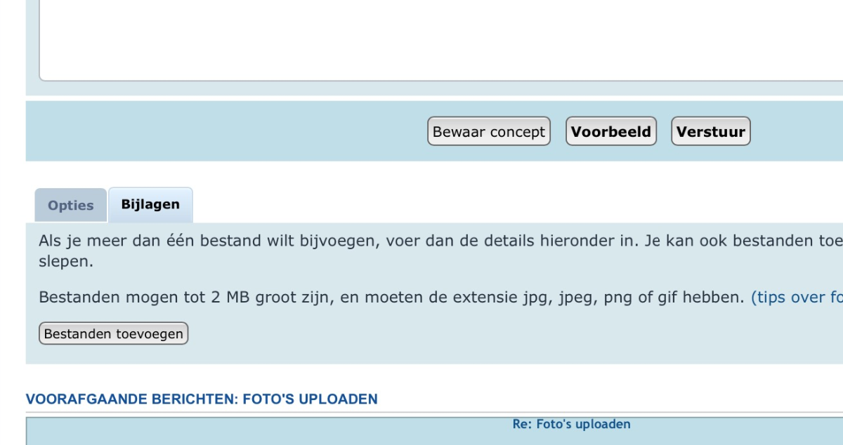 Vanaf nu is het mogelijk om bij het schrijven van een bericht afbeeldingen rechtstreeks op het forum te uploaden. Dit doe je als volgt: