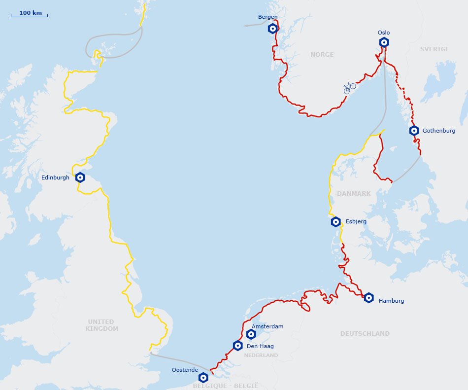 Het oudste stuk van de North Sea Cycle Route is de Noordzeeroute (LF1) tussen Den Helder en Boulogne-sur-Mer. Deze bestaat al meer dan 20 jaar en is bewegwijzerd. Het Franse deel van deze route loopt echter niet langs de veerhavens van Calais en Duinkerke, maar tientallen kilometers landinwaarts.